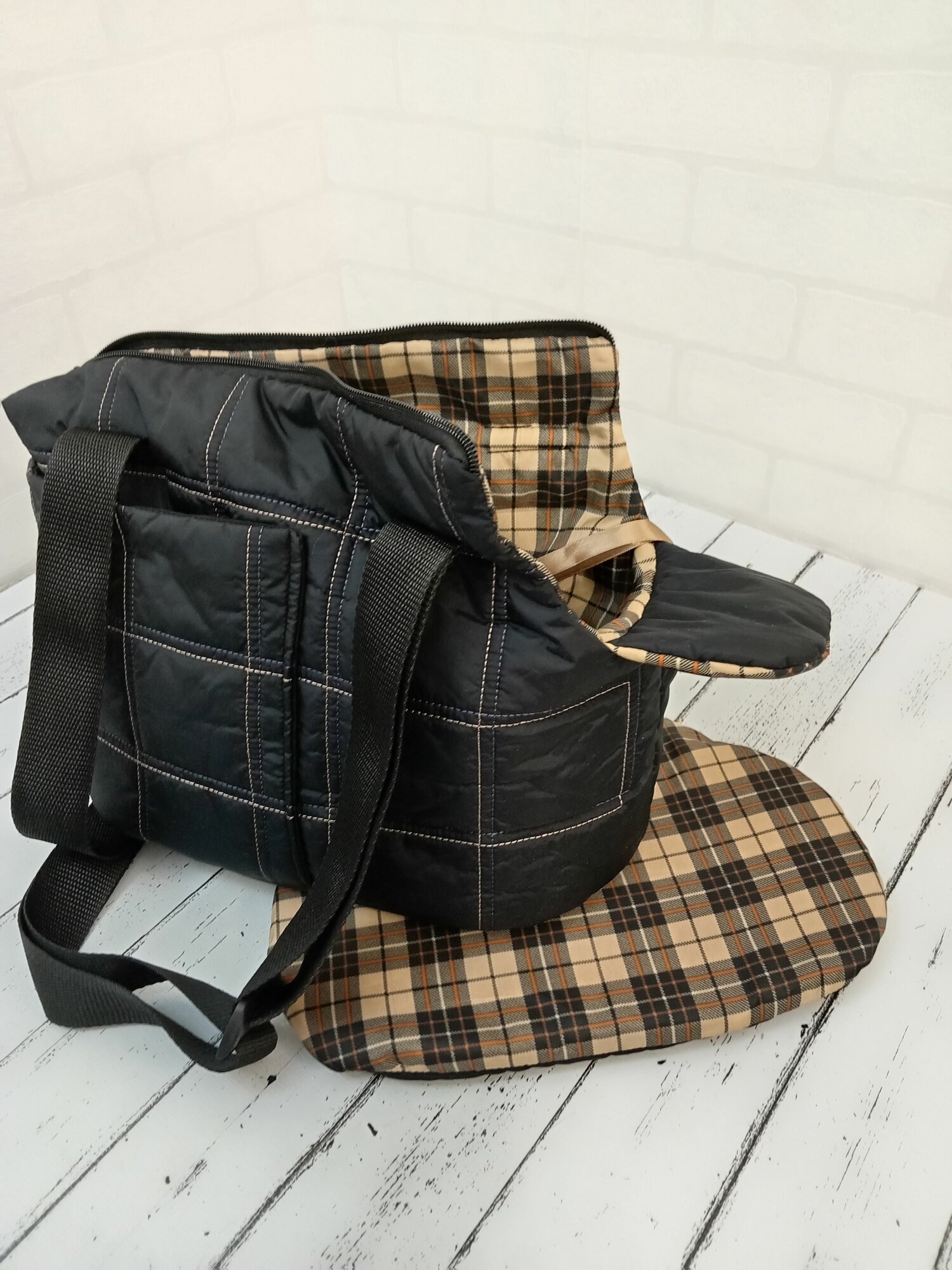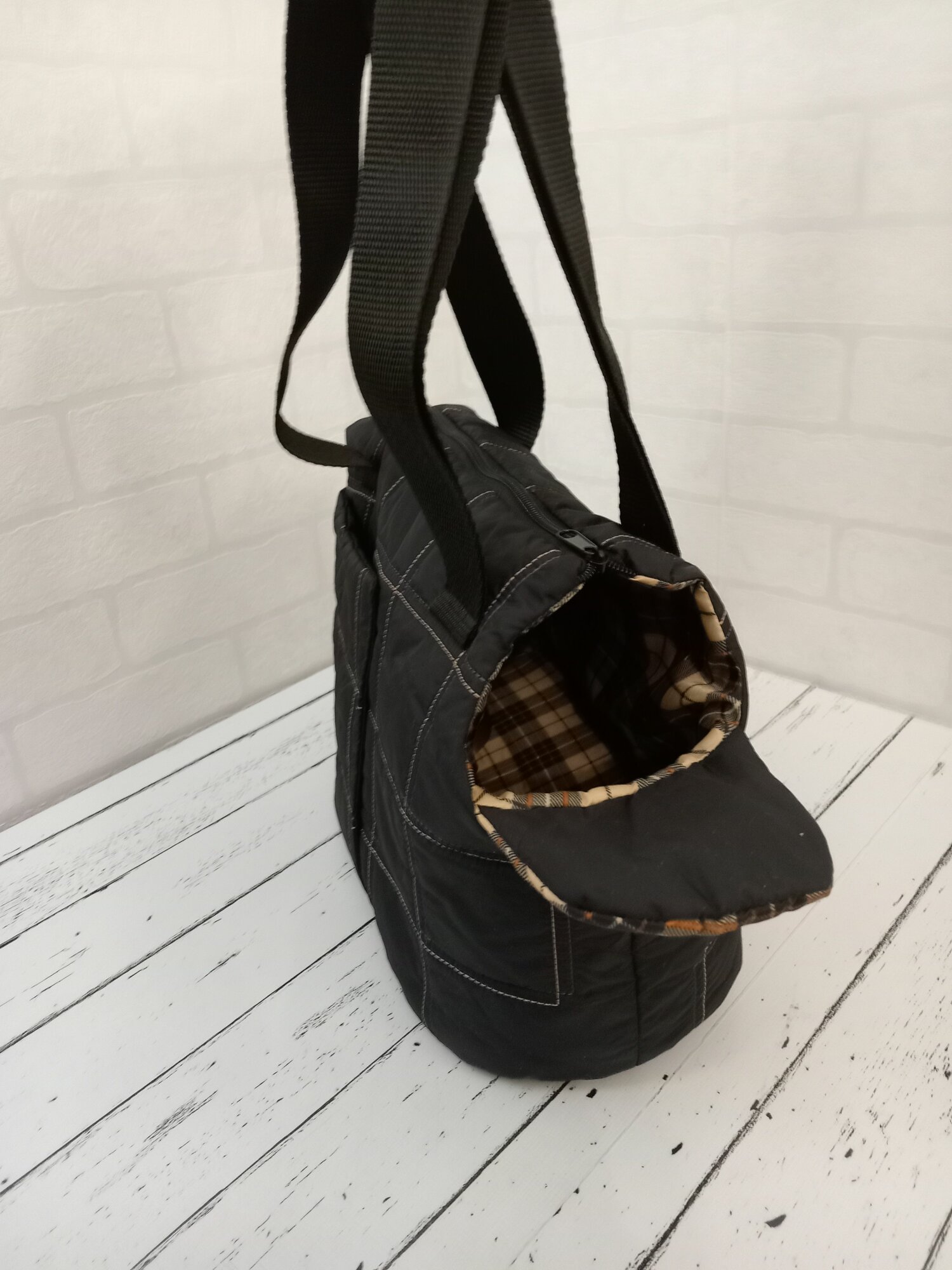 Зимняя Сумка-переноска черная, для собак 3-4 кг, размер М 34см Х 18см Х 25см