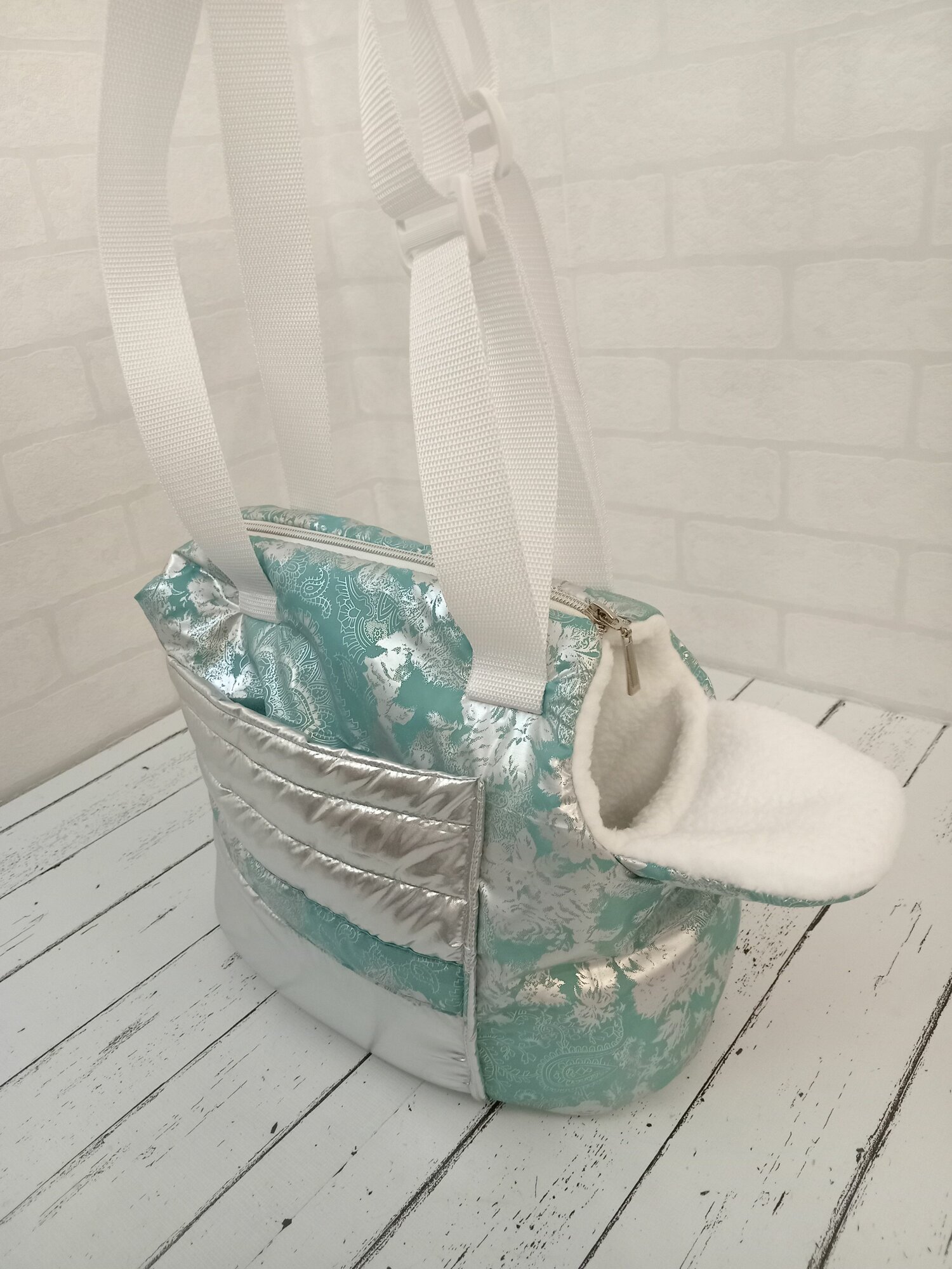 Зимняя Сумка-переноска, цвет морской волны , для собак 2-3 кг, размер S 30см Х 16см Х 20см