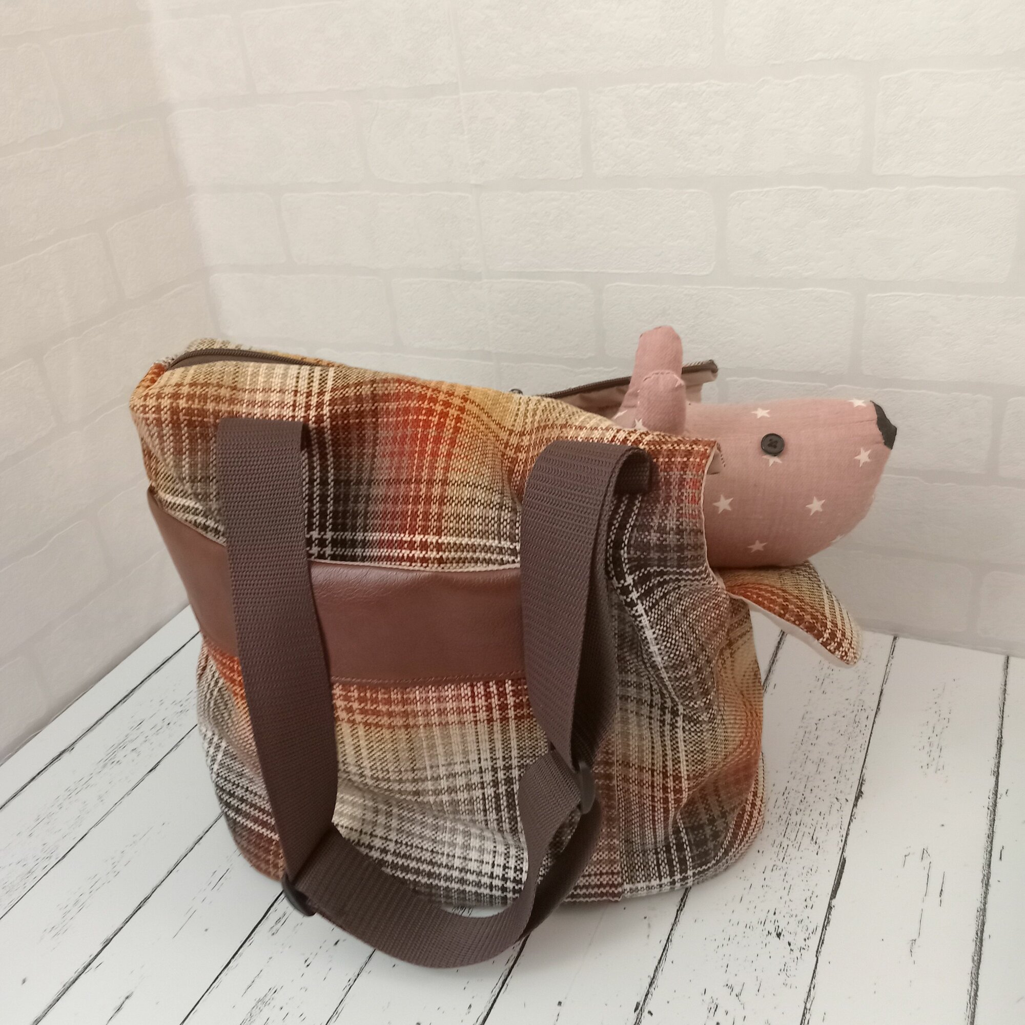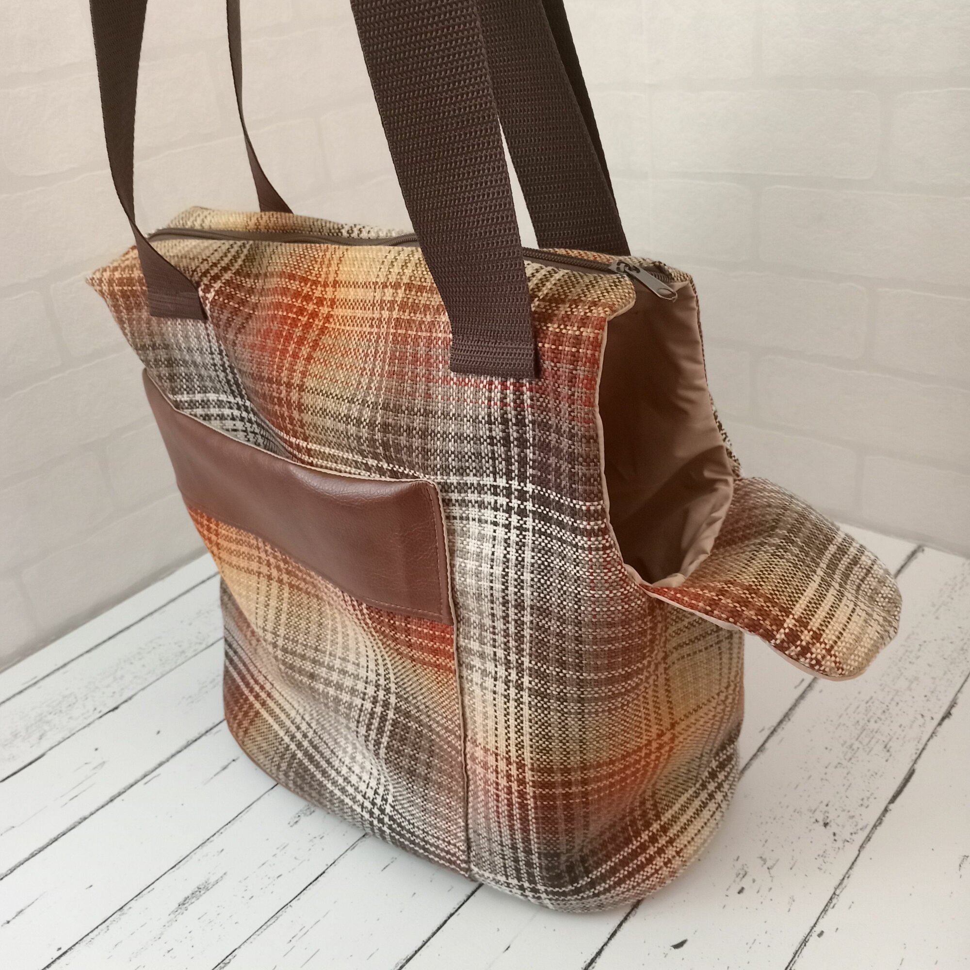 Купить Летняя Сумка-переноска, для собак 3-4кг, размер М 34х18х25, Коричневая клетка
