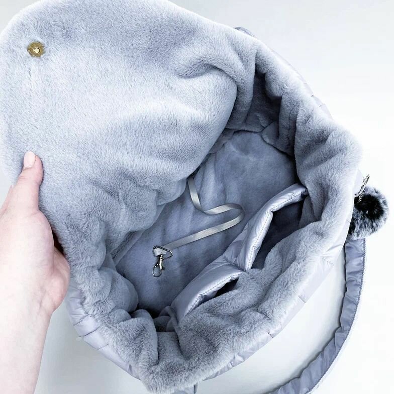 Переноска для кошек собак животных сумка утепленная мехом серая Puffy Дакота