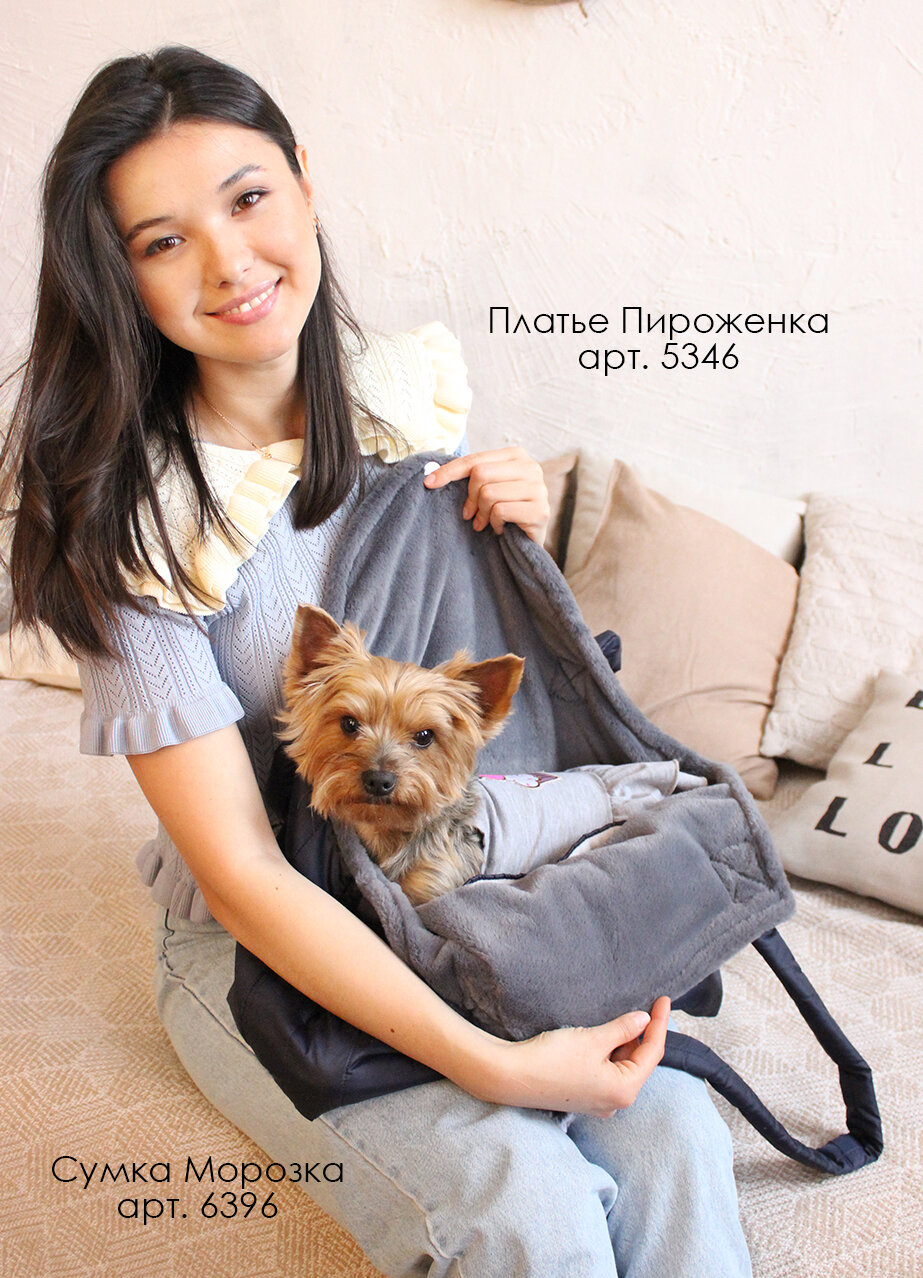 Переноска для кошек собак животных сумка утепленная мехом серая Puffy Дакота