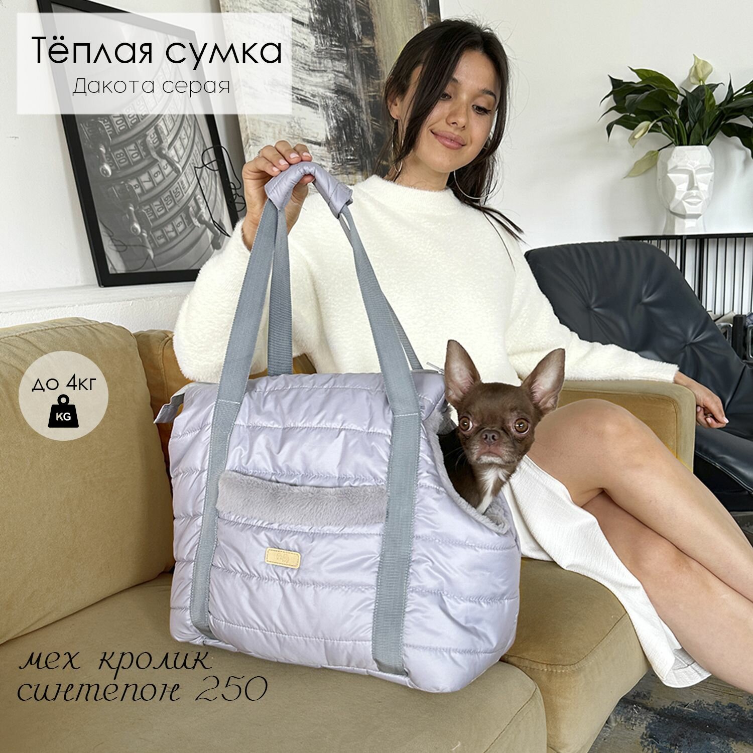 Переноска для кошек собак животных сумка утепленная мехом серая Puffy Дакота интересное: