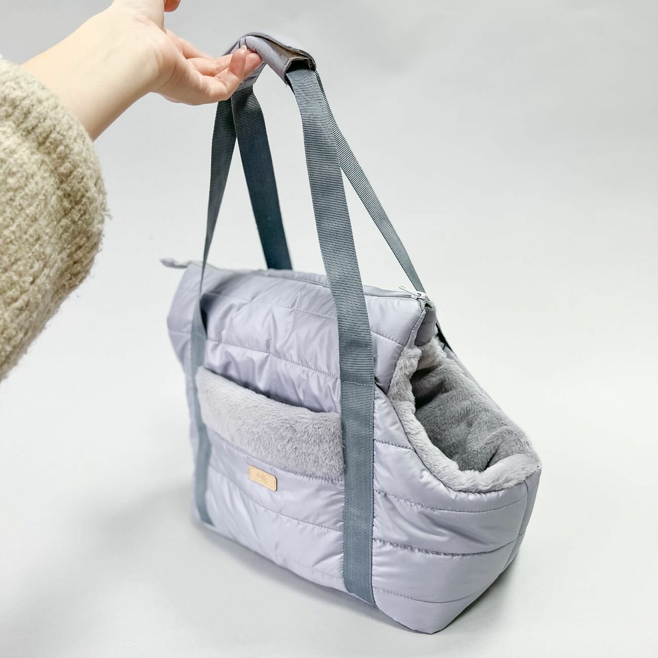 Купить Переноска для кошек собак животных сумка утепленная мехом серая Puffy Дакота