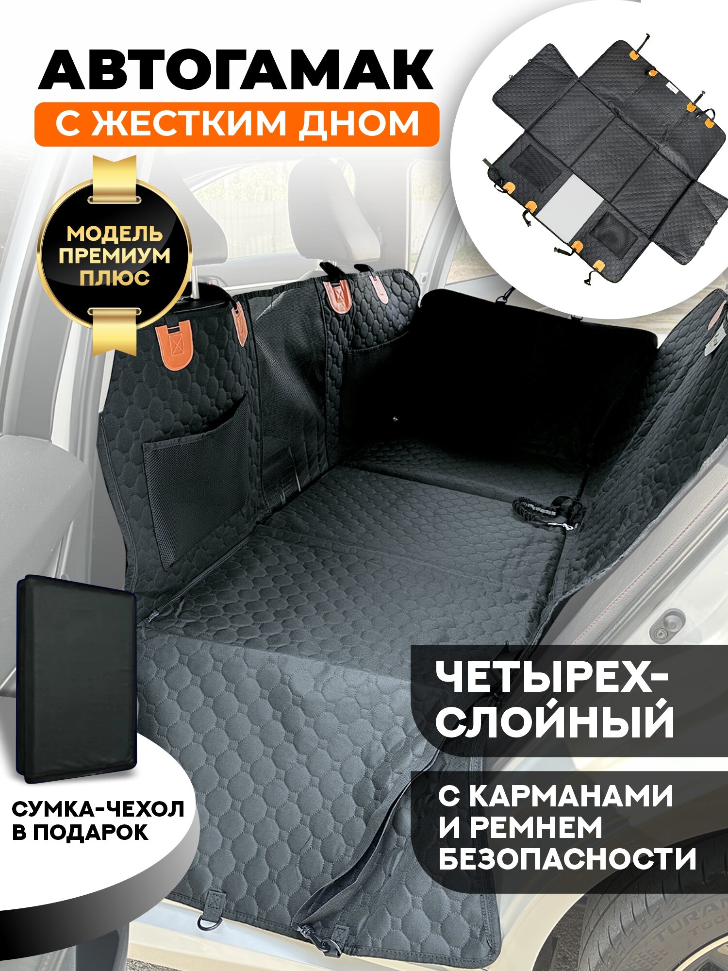 Купить Автогамак для перевозки собак "Хвостатый пассажир", модель Премиум Плюс с жестким дном и ремнем безопасности