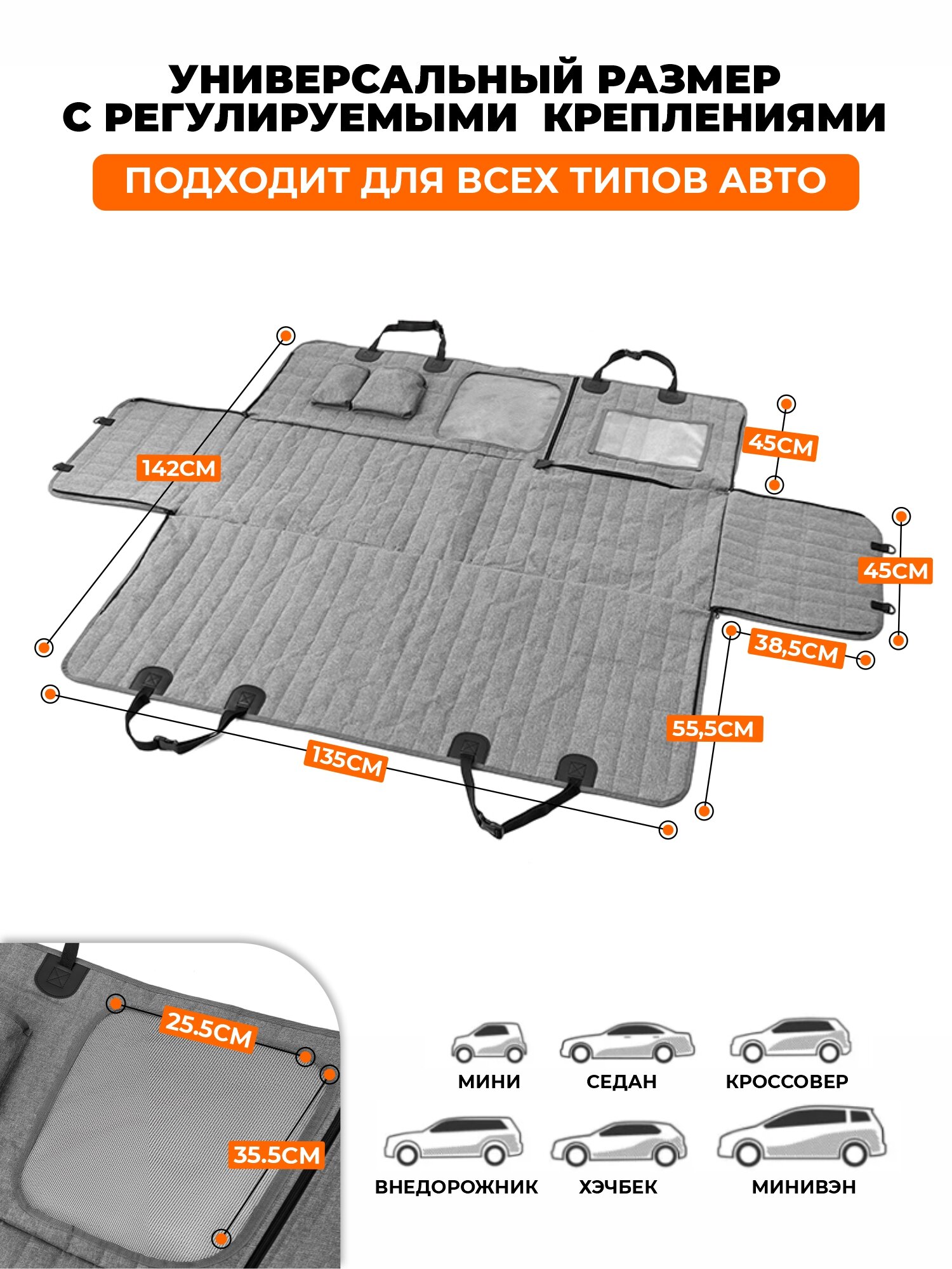 Автогамак на заднее сиденье для перевозки собак "Хвостатый пассажир Косточка" с окном, карманом и ремнем безопасности