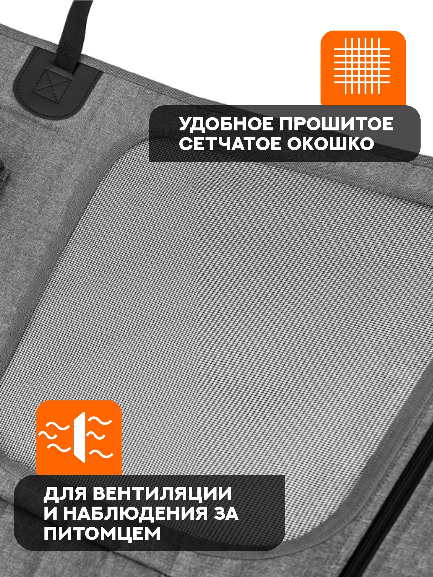 Автогамак для перевозки собак "Хвостатый пассажир", модель Премиум Плюс с жестким дном и ремнем безопасности, серый