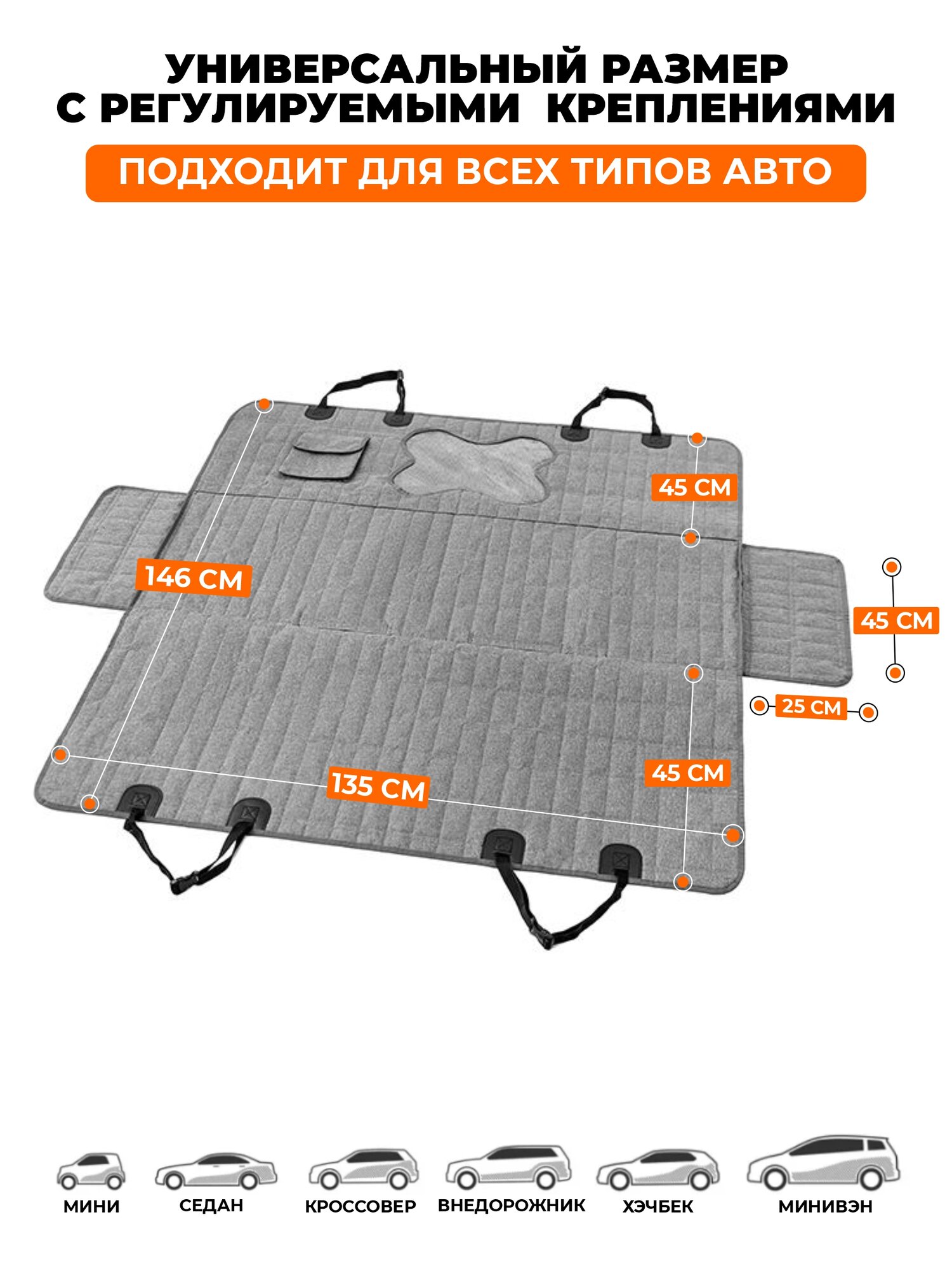 Автогамак для перевозки собак "Хвостатый пассажир" с боковой защитой дверей, порогов и регулировкой по высоте