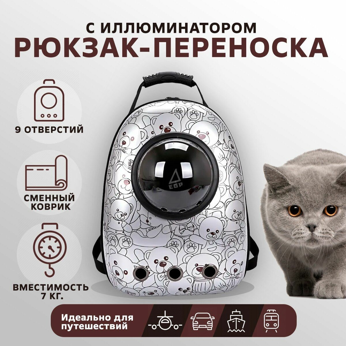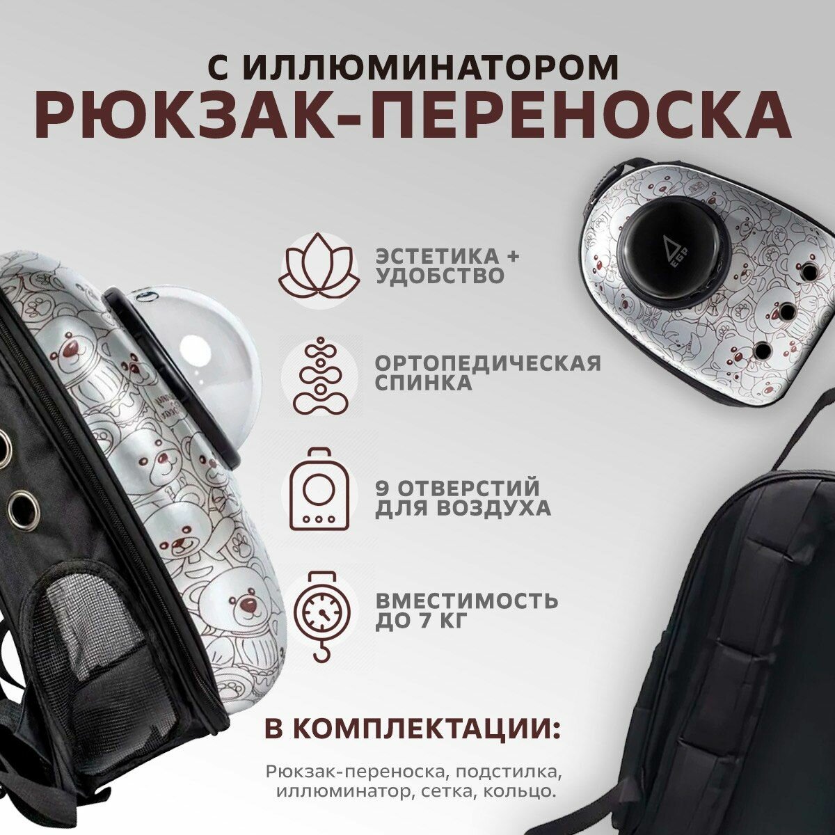 Рюкзак-переноска для питомцев мелких и средних пород с иллюминатором / 45х31х23 см, Серебристый интересное: