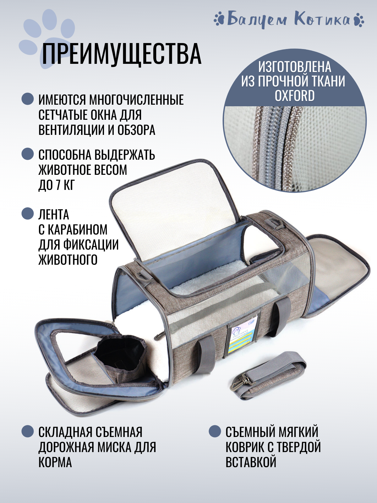 Складная сумка переноска "Балуем Котика" для кошек и собак мелких пород, грызунов, 28 см x 45 см х28 см интересное: