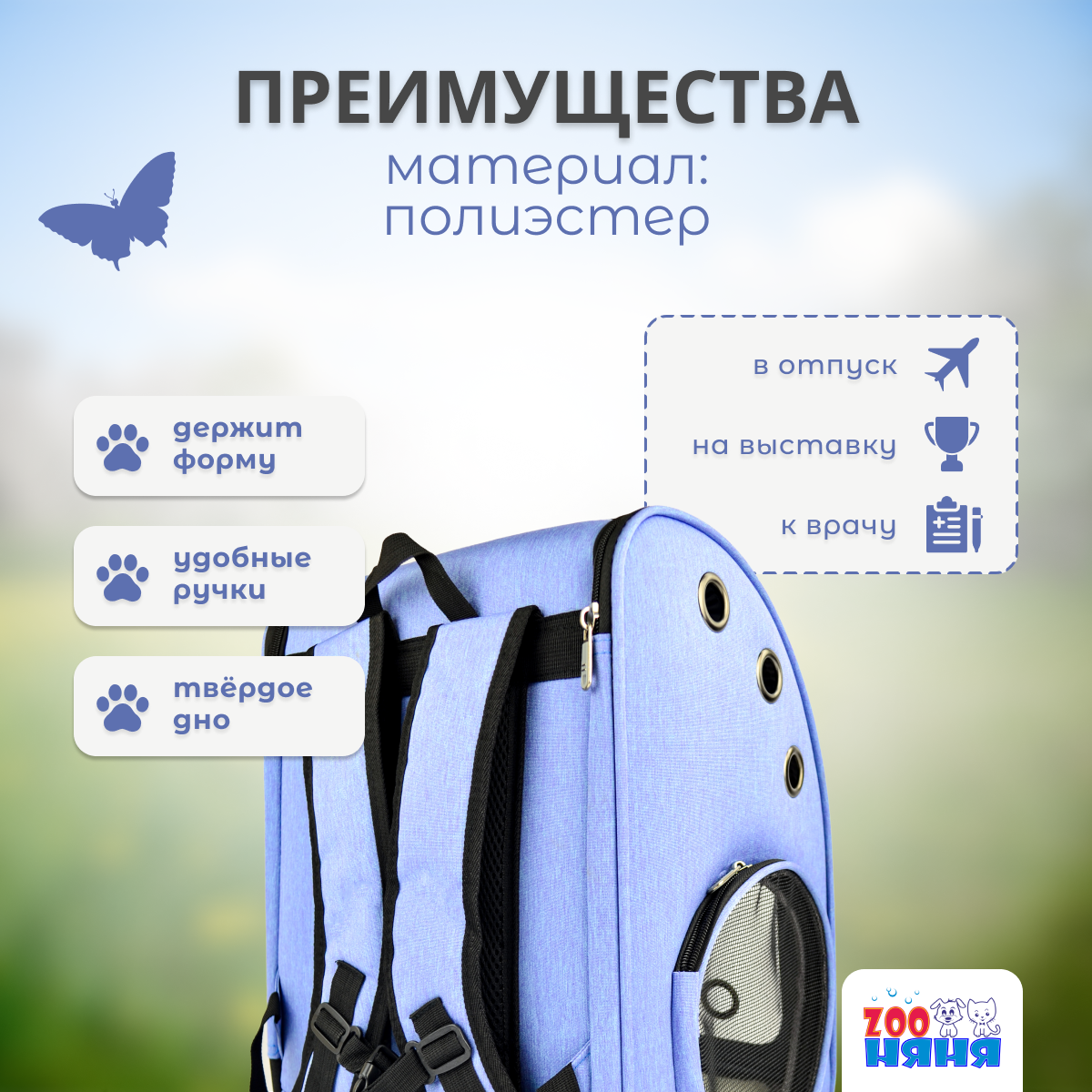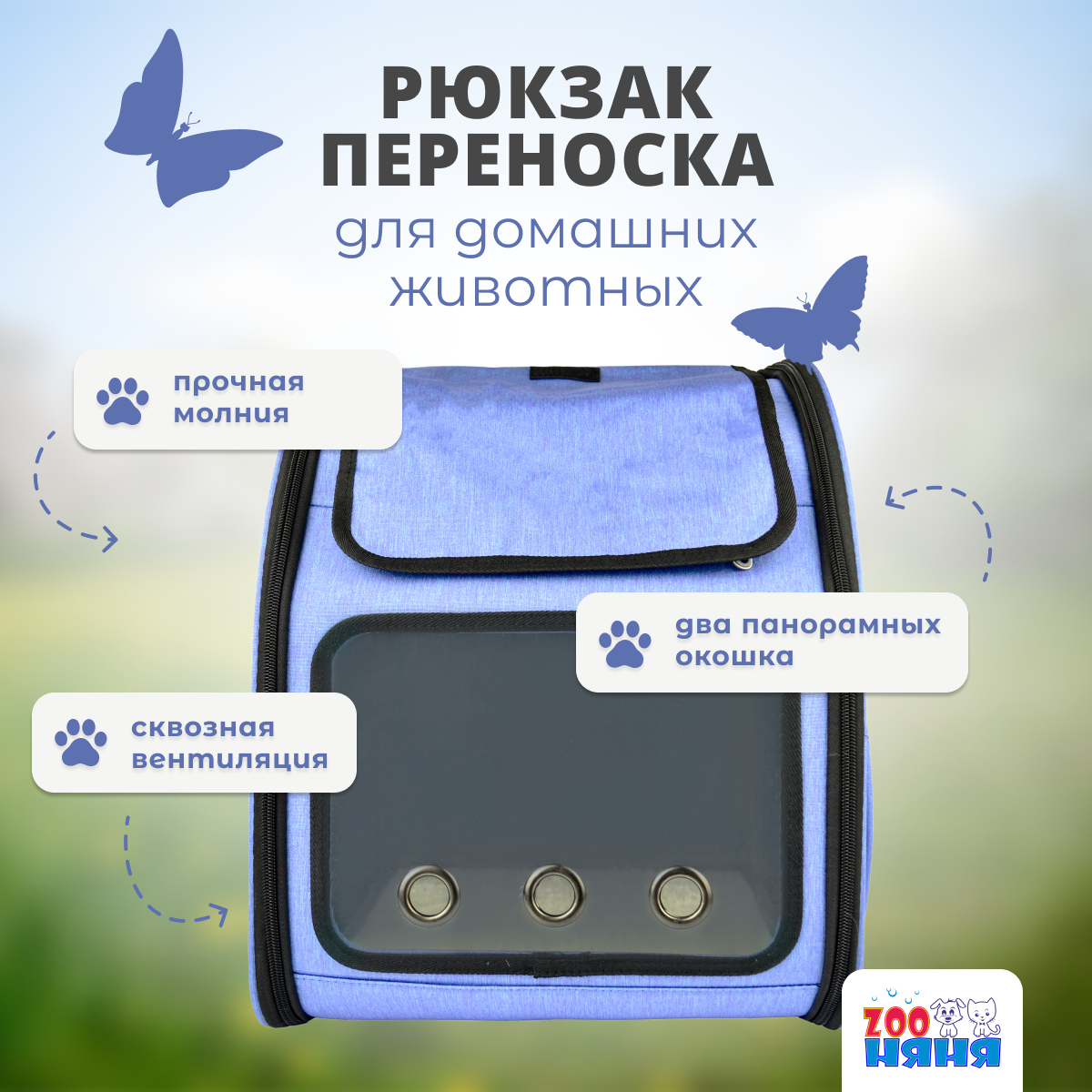 Рюкзак-переноска ZOO Няня складной, голубой, для собак и кошек 34x26x42 см интересное: