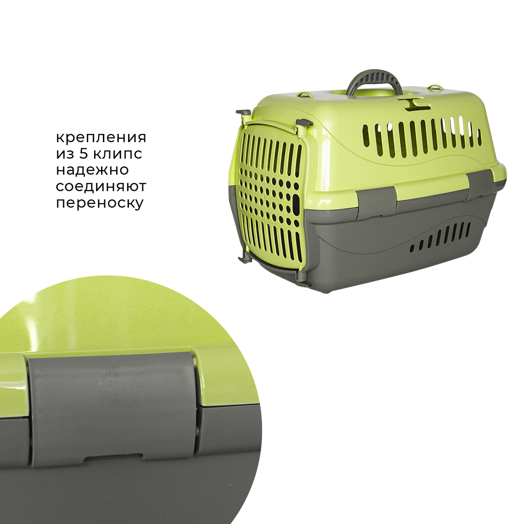 Переноска ZOOexpress Турне для кошек и собак мелких пород, цветная пластиковая дверца, 54,5х36х34 см (L), зелёный