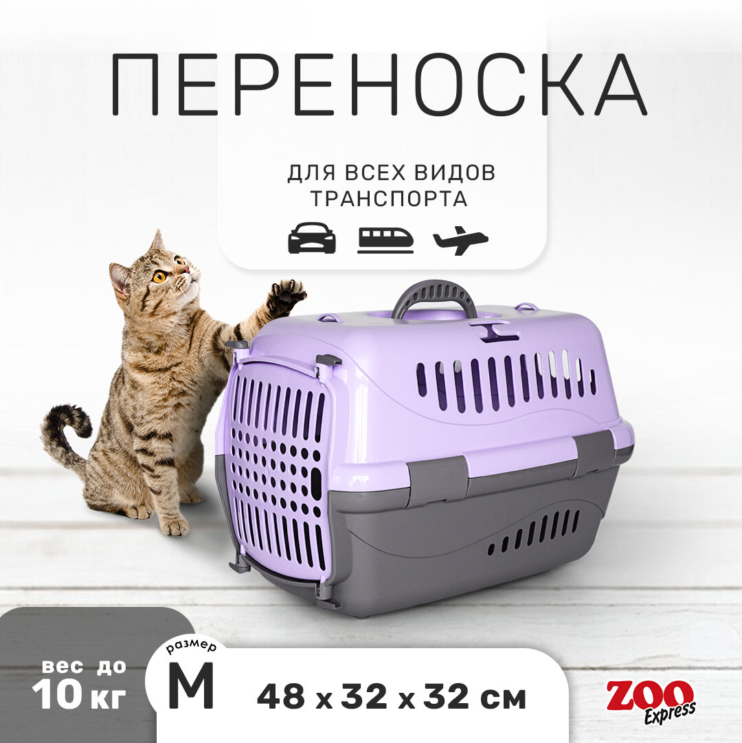 СохранитьПереноска ZOOexpress Турне для кошек и собак мелких пород, цветная пластиковая дверца, 48х32х32 см (M), фиолетовый интересное: