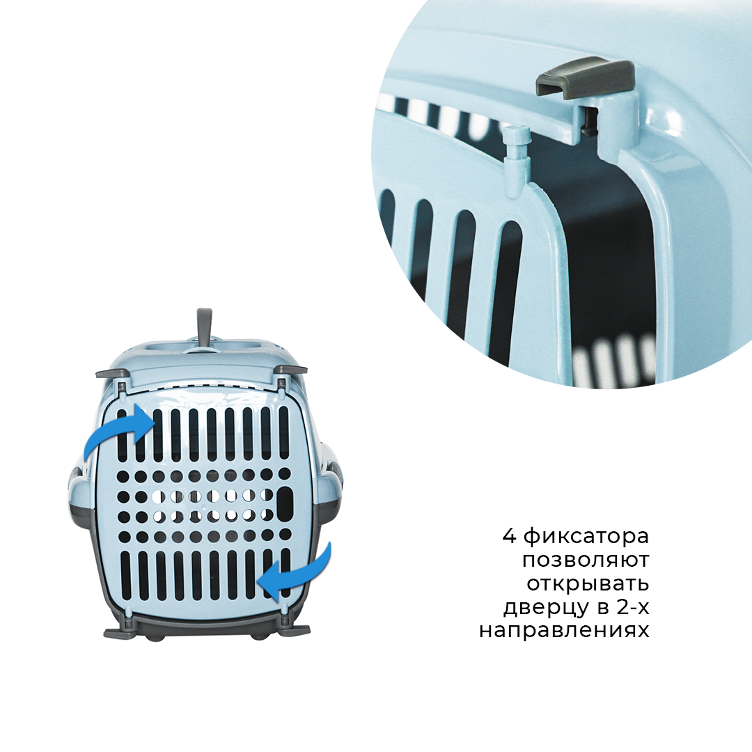 Купить Переноска ZOOexpress Турне для кошек и собак мелких пород, цветная пластиковая дверца, 42х29х29,5 см (S), голубой
