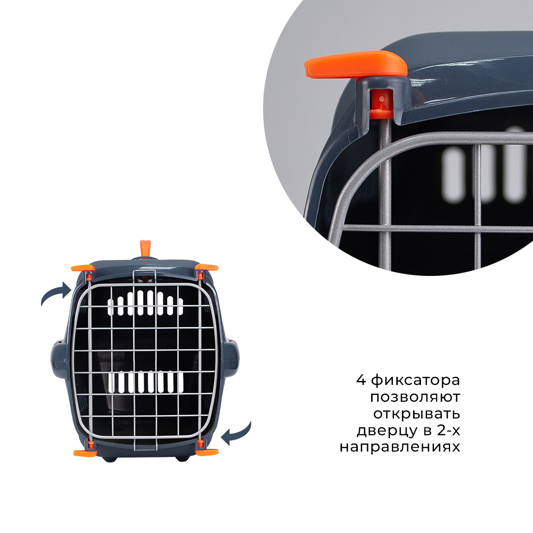 СохранитьПластиковая переноска для кошек и собак ZOOSET, 42х29х29,5 см, металлическая дверца и плечевой ремень, серый/оранжевый интересное: