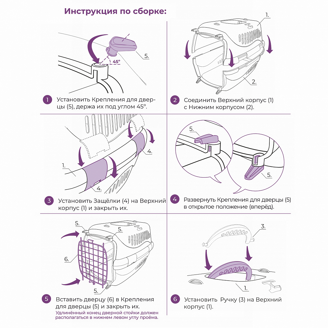 Пластиковая переноска для кошек и собак ZOOSET, 54,5х36х34 см, металлическая дверца и плечевой ремень, серый/сиреневый