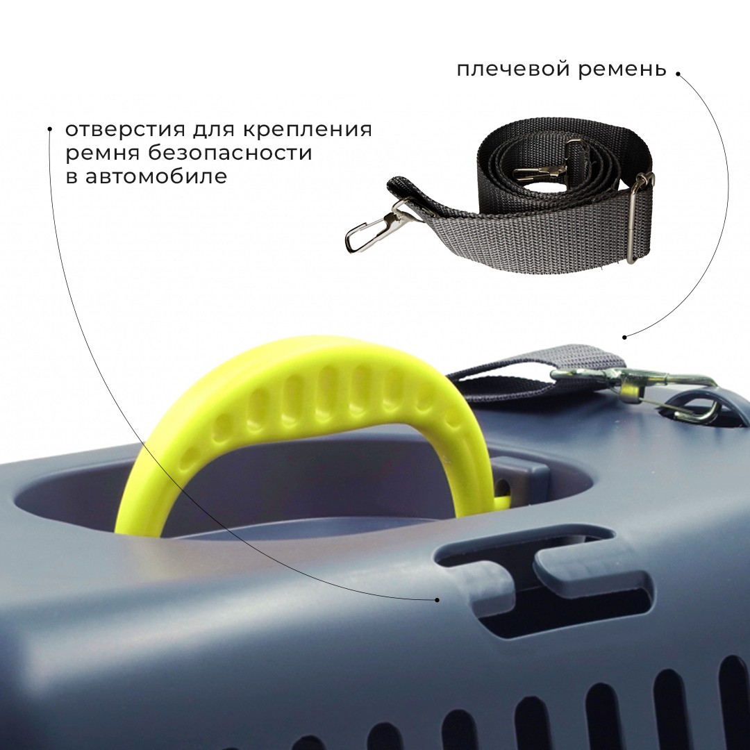 Пластиковая переноска для кошек и собак ZOOSET, 54,5х36х34 см, металлическая дверца и плечевой ремень, серый/желтый