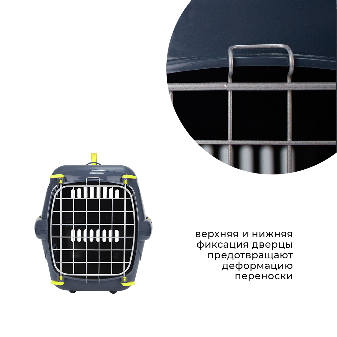 Пластиковая переноска для кошек и собак ZOOSET, 42х29х29,5 см, металлическая дверца и плечевой ремень, серый/желтый