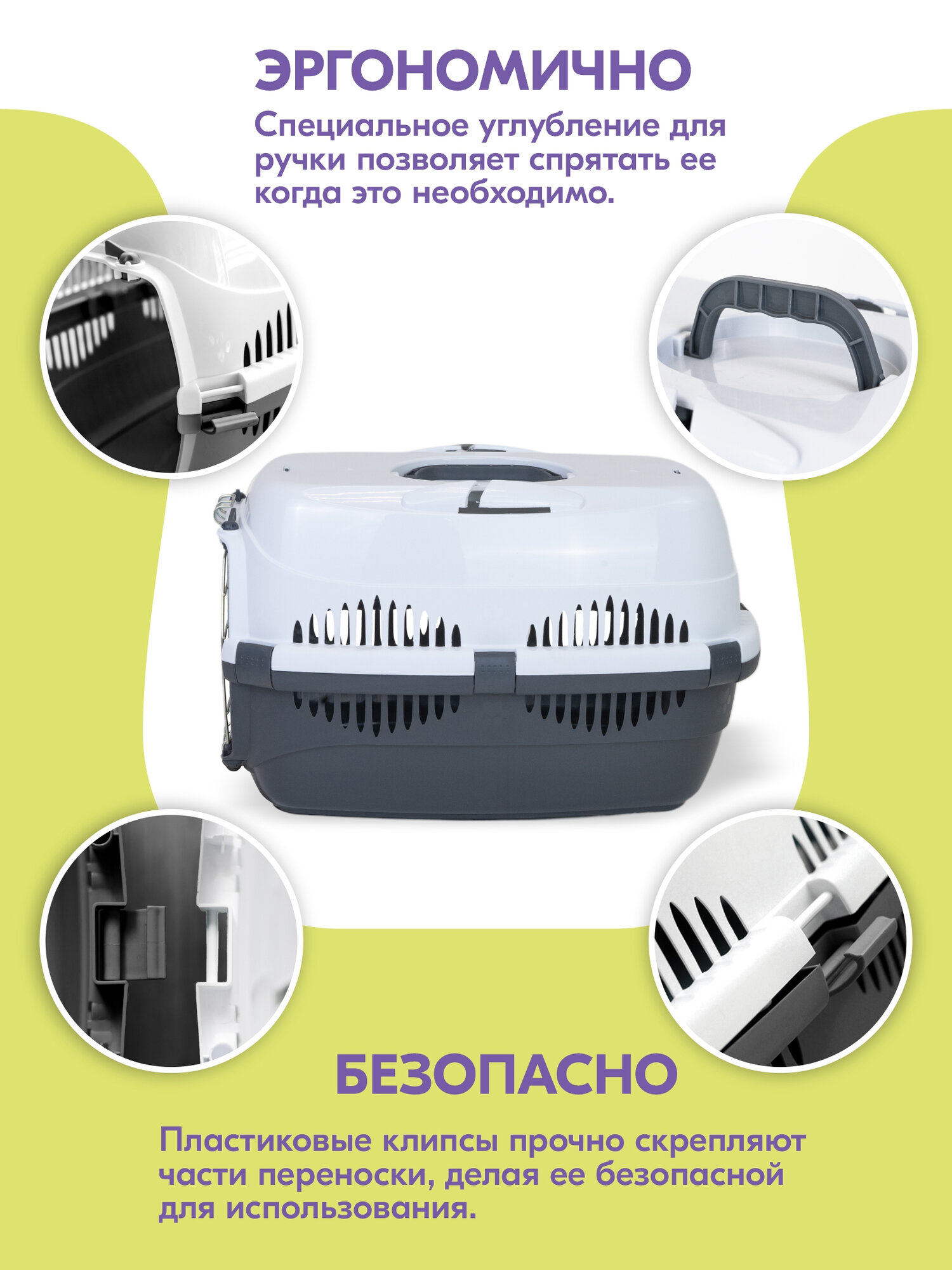 Переноска 44 х 29 х 27,5см пластиковая PetTails с металлической дверцей (до 9кг) (сер. низ/бел. верх) интересное: