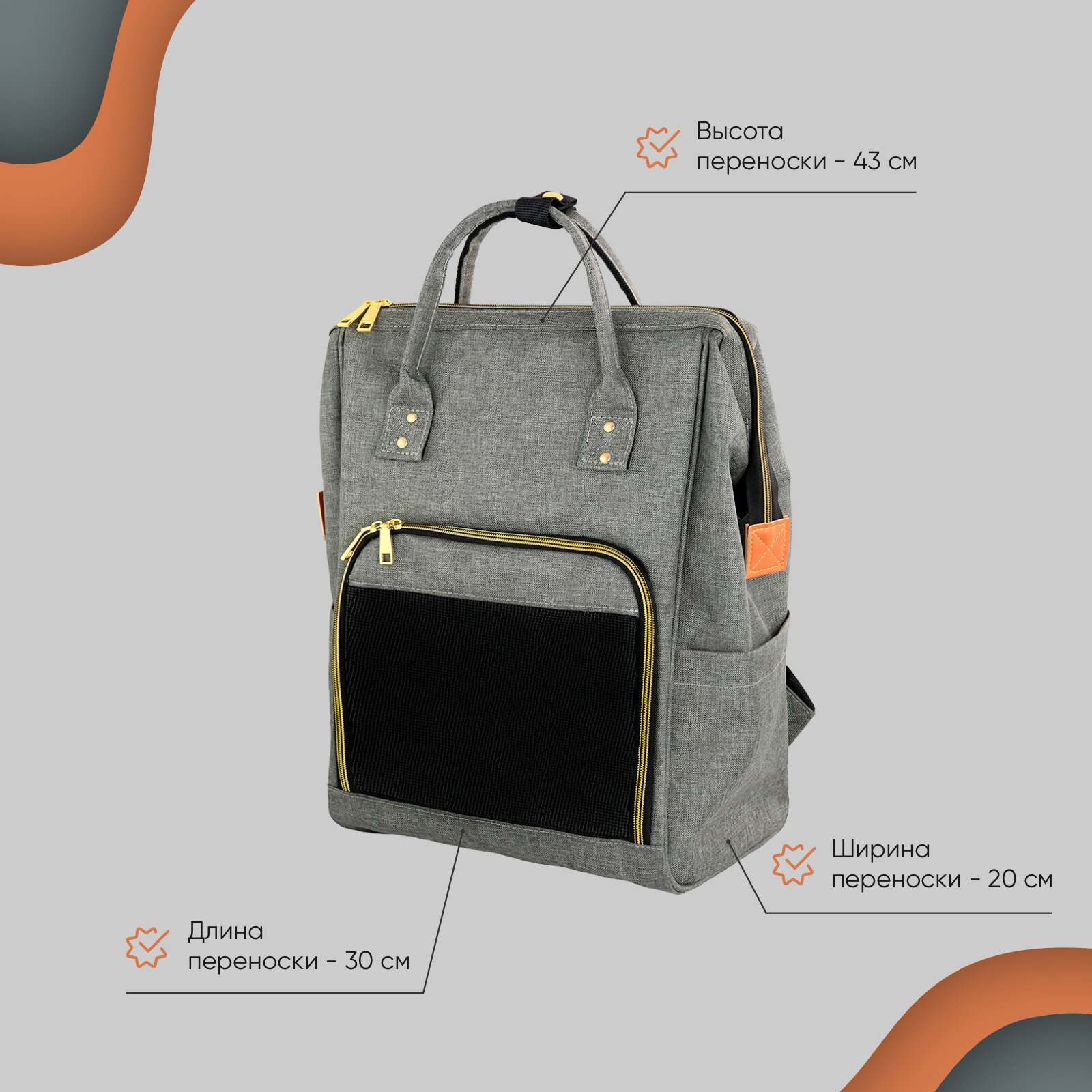 Рюкзак-переноска для животных, для кошек, для собак, "Не Один Дома" Orange, темно-серый, 41х21х30 см