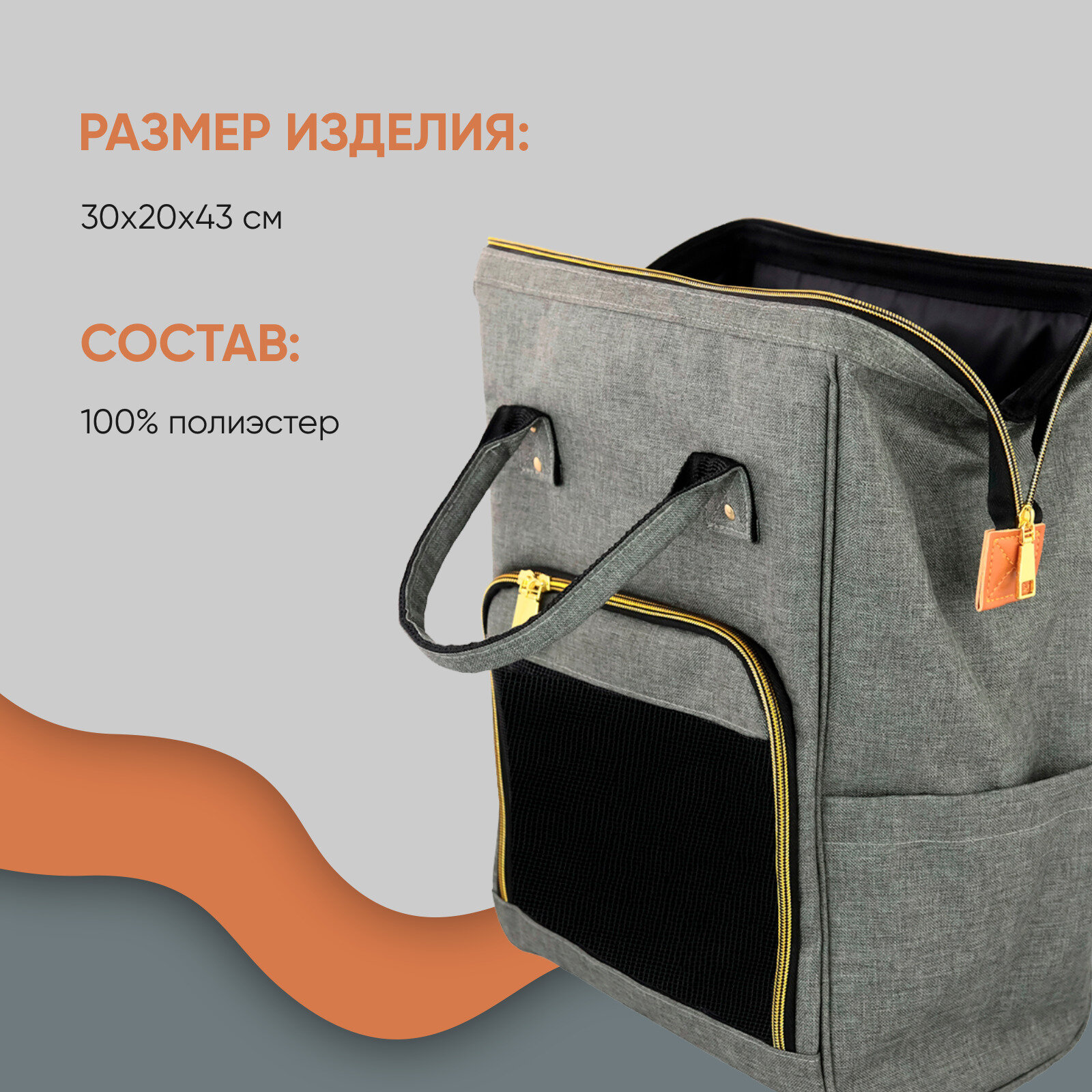 Купить Рюкзак-переноска для животных, для кошек, для собак, "Не Один Дома" Пантон, серый, 30х20х43 см