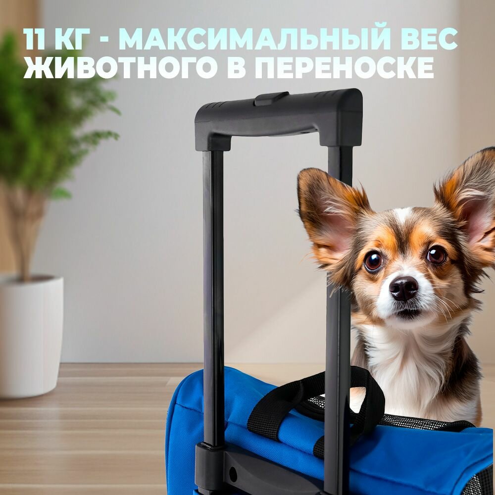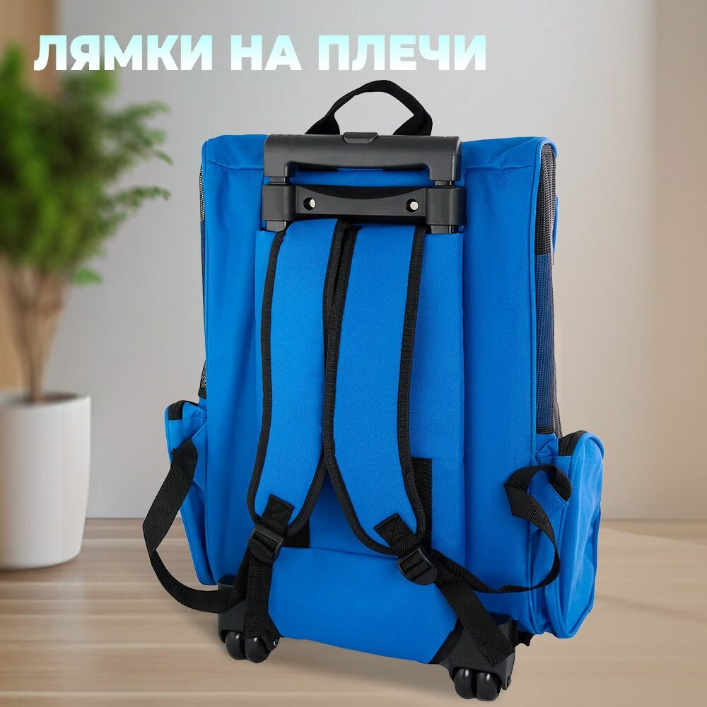 Купить Рюкзак-переноска на колесиках для животных, для кошек, для собак, "Не Один Дома" Касл, синий, 35х27х49 см