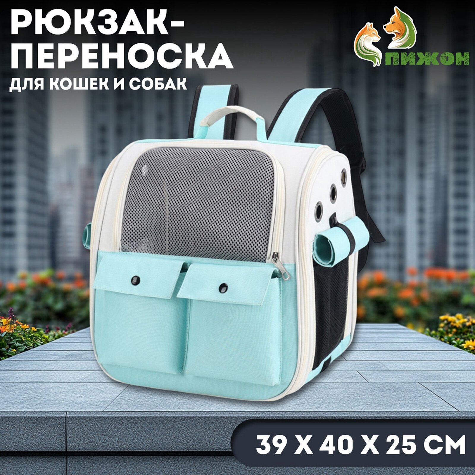 Рюкзак-переноска для кошек и собак, 39 х 40 х 25 см, бирюза, 10574172 интересное: