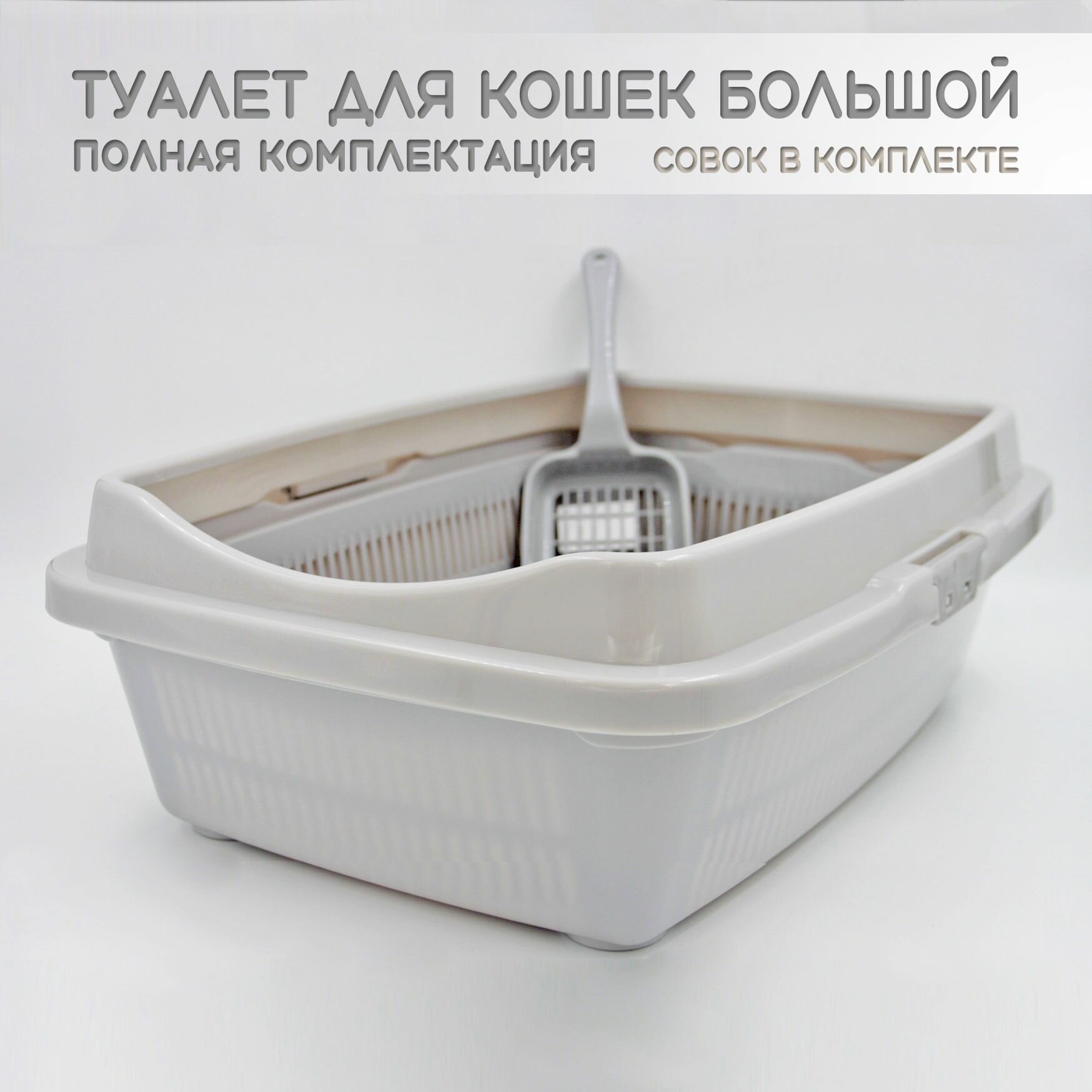 Купить Туалет для кошек большой полная комплектация светло-серый + совок в подарок