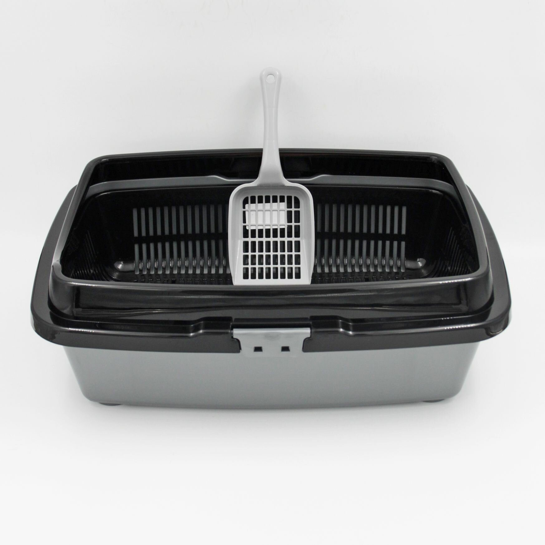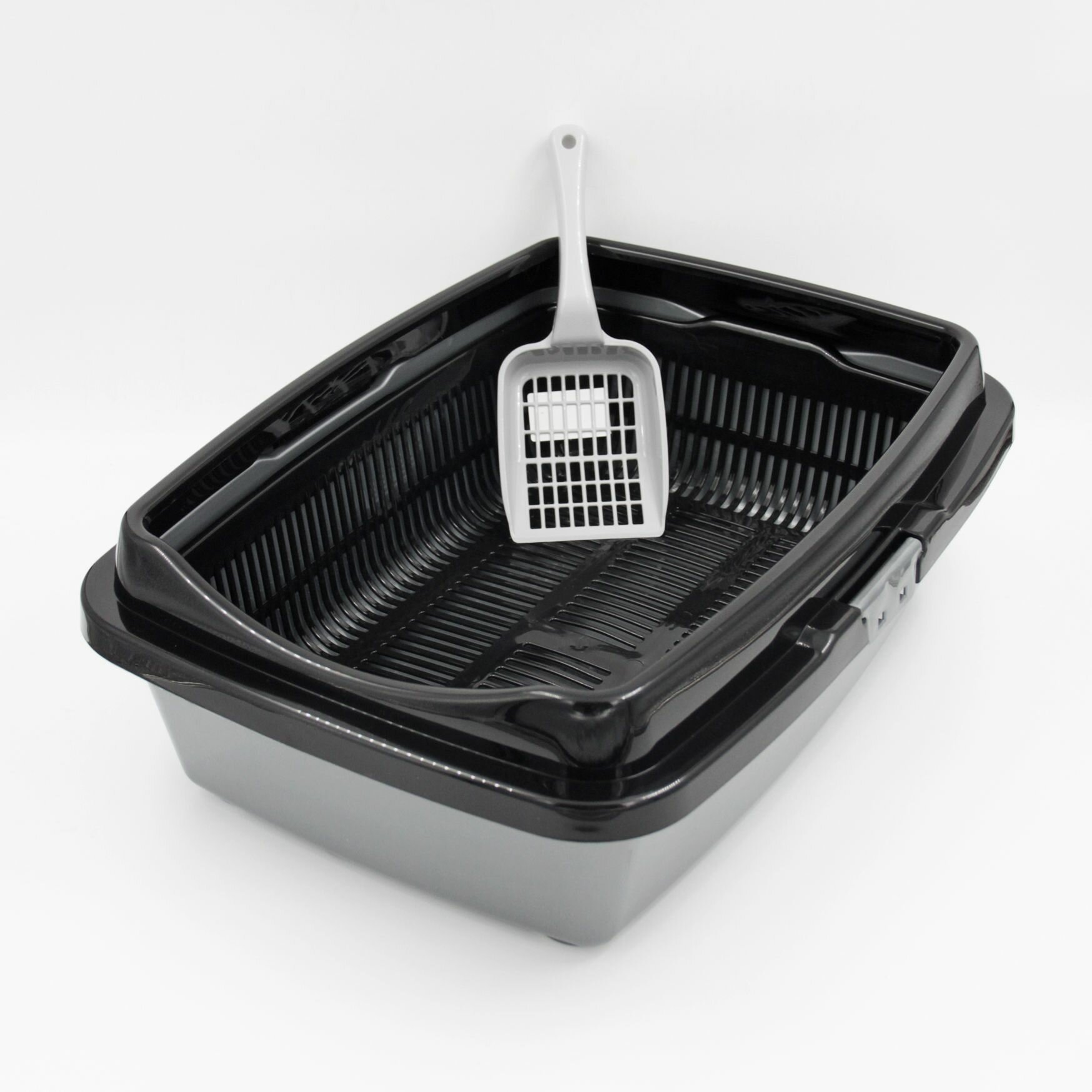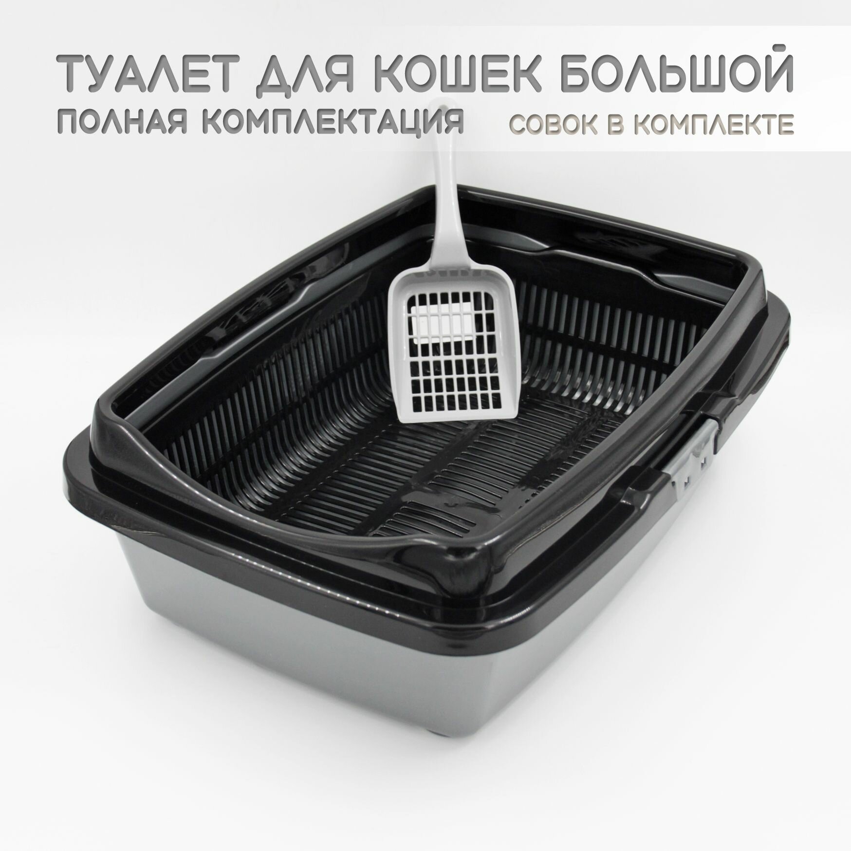 Купить Туалет для кошек большой полная комплектация черно-серый + совок в подарок