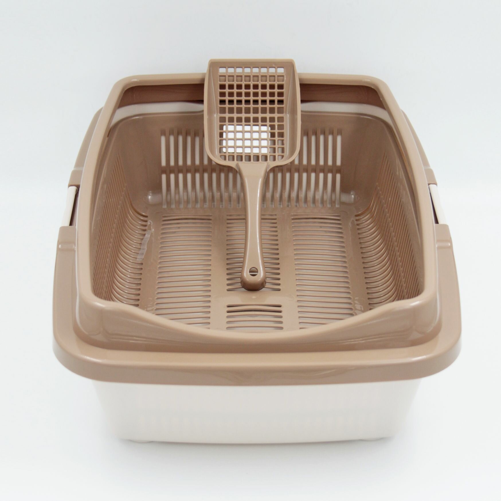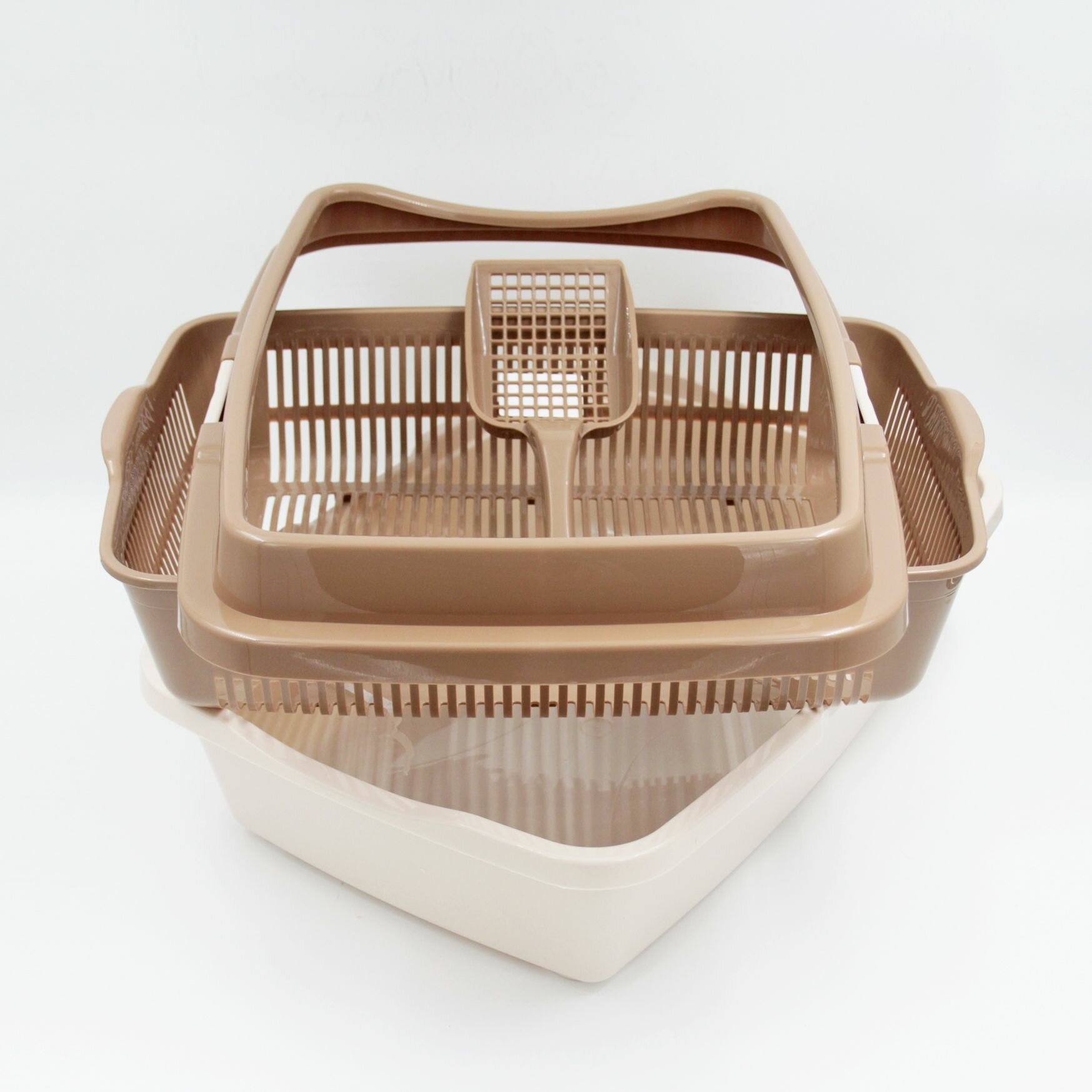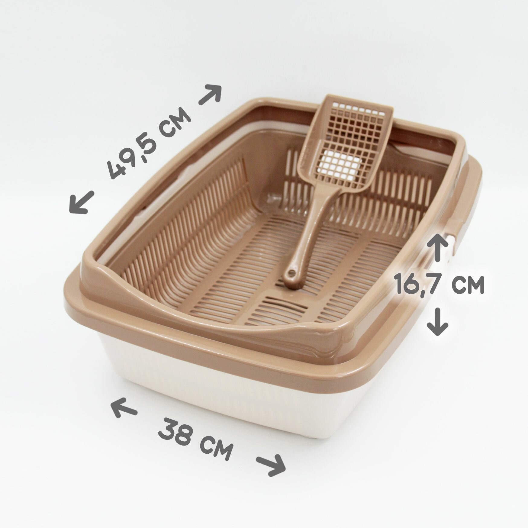 Купить Туалет для кошек большой полная комплектация молочный-кофейный + совок в подарок