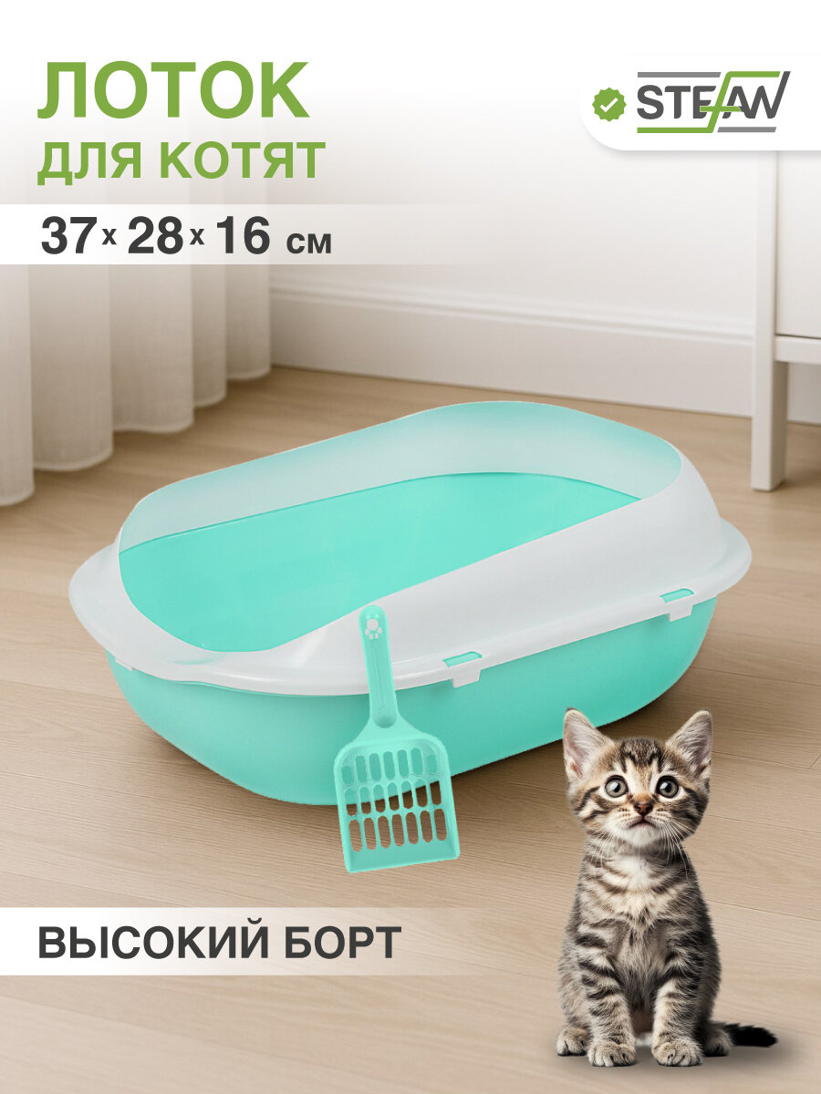 Купить Туалет-лоток для котят и кошек с совком STEFAN, малый (S) 37х28х16, бирюзовый, BP2492
