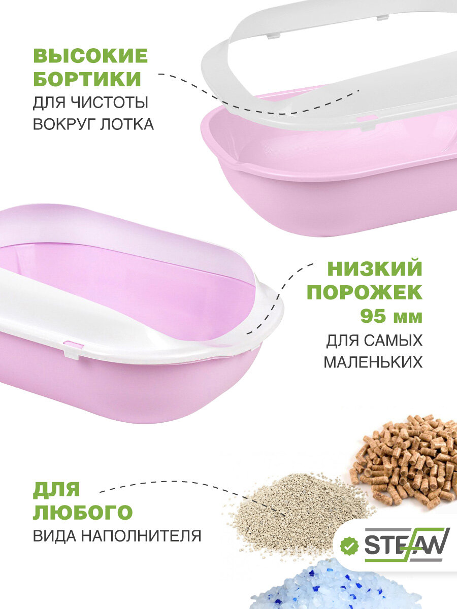 Купить Туалет лоток для котят и кошек с высокими бортиками и совком STEFAN, малый (S) 37х28х16, лиловый, BP2494