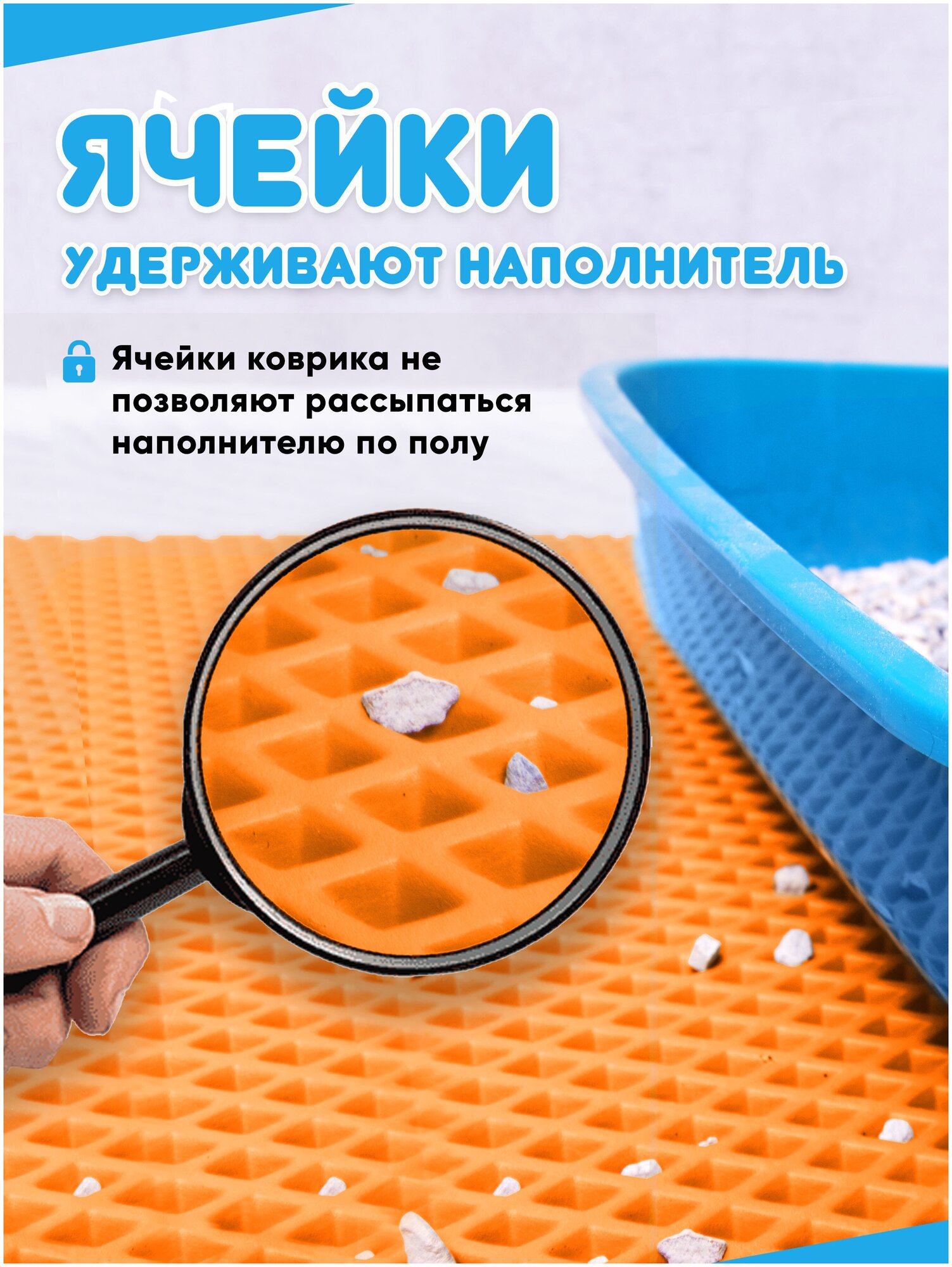 Коврик под лоток для кошек/коврик под лоток для собак / коврик под лоток / коврик для туалета (синий) 75*57см