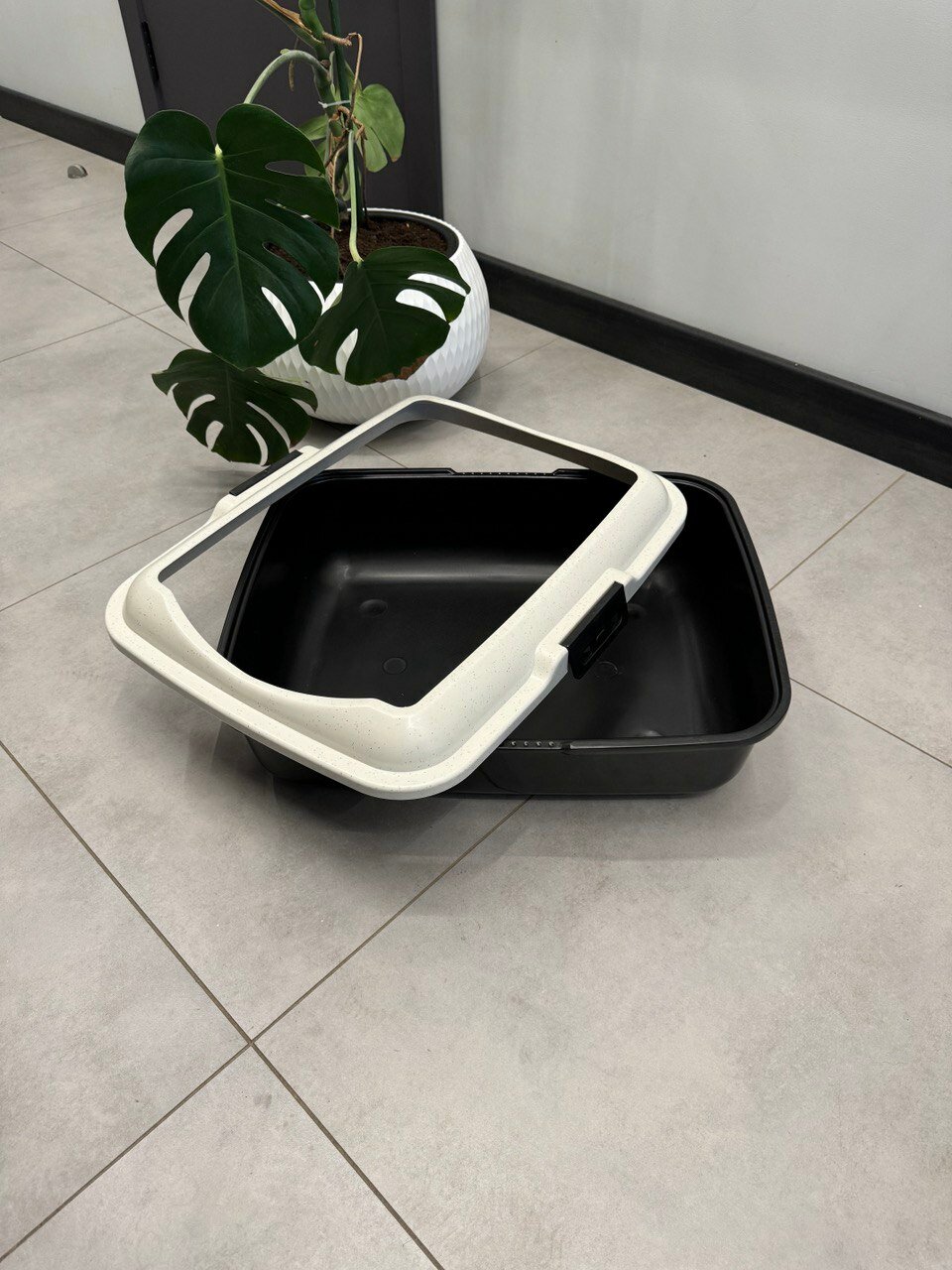 Закрытый лоток для кошек "Чистый Котик" поддон,2 входа, бело-черный, пластик 54,1x43,7x38,9