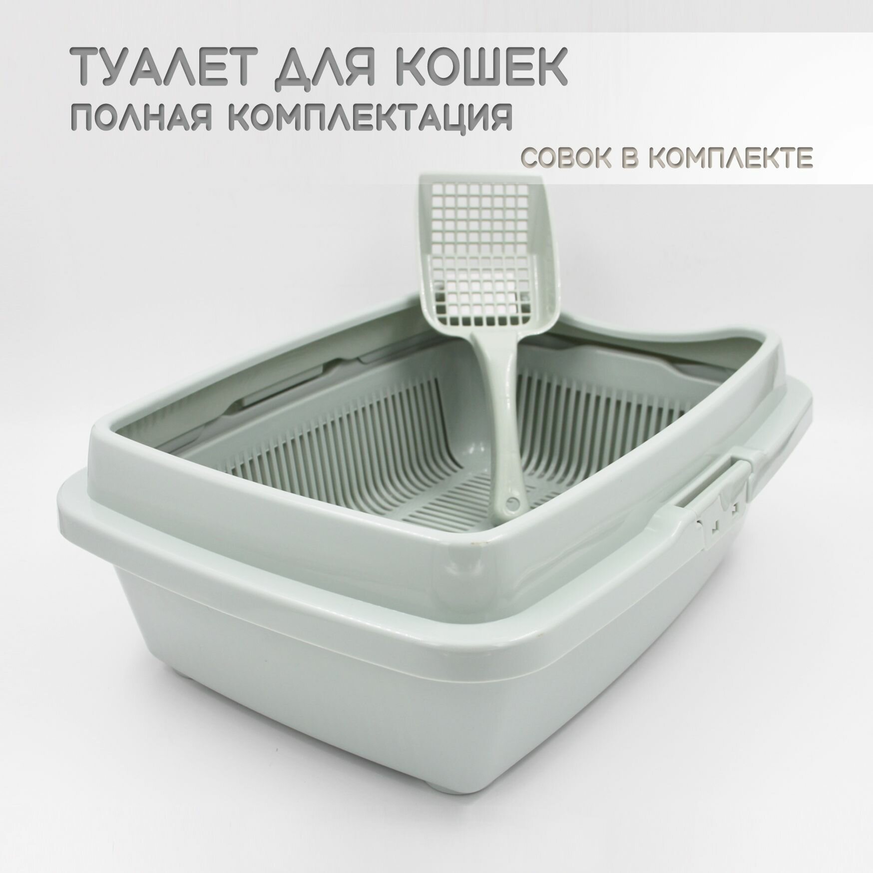 Туалет для кошек полная комплектация светло серый + совок в подарок
