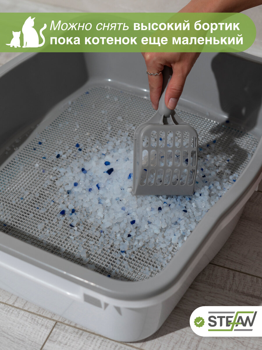 Лоток для кошек с высоким бортом и сеткой STEFAN, (M) 53х43х27, белый, BP1510 интересное: