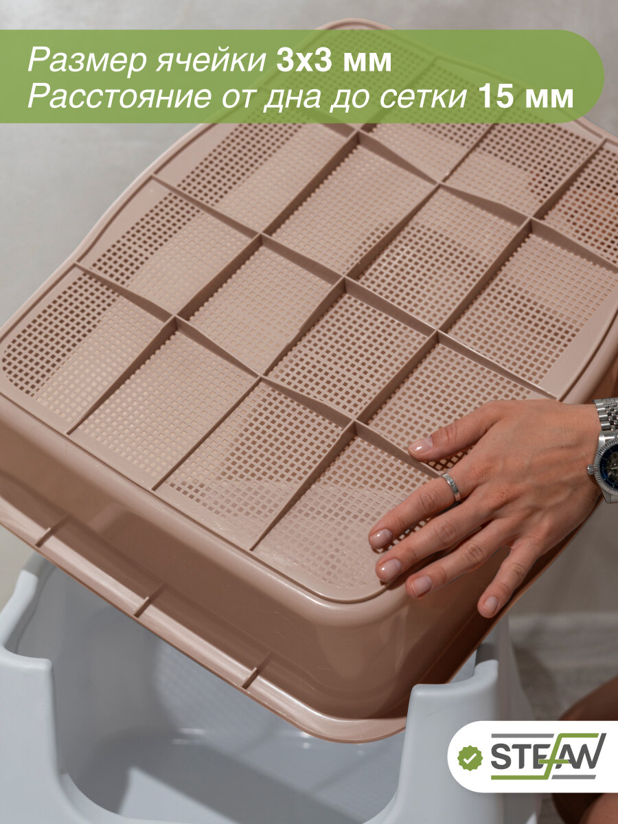 Туалет для животных STEFAN (Штефан) с высоким бортом и сеткой, бежевый, 53х43х27 см интересное:
