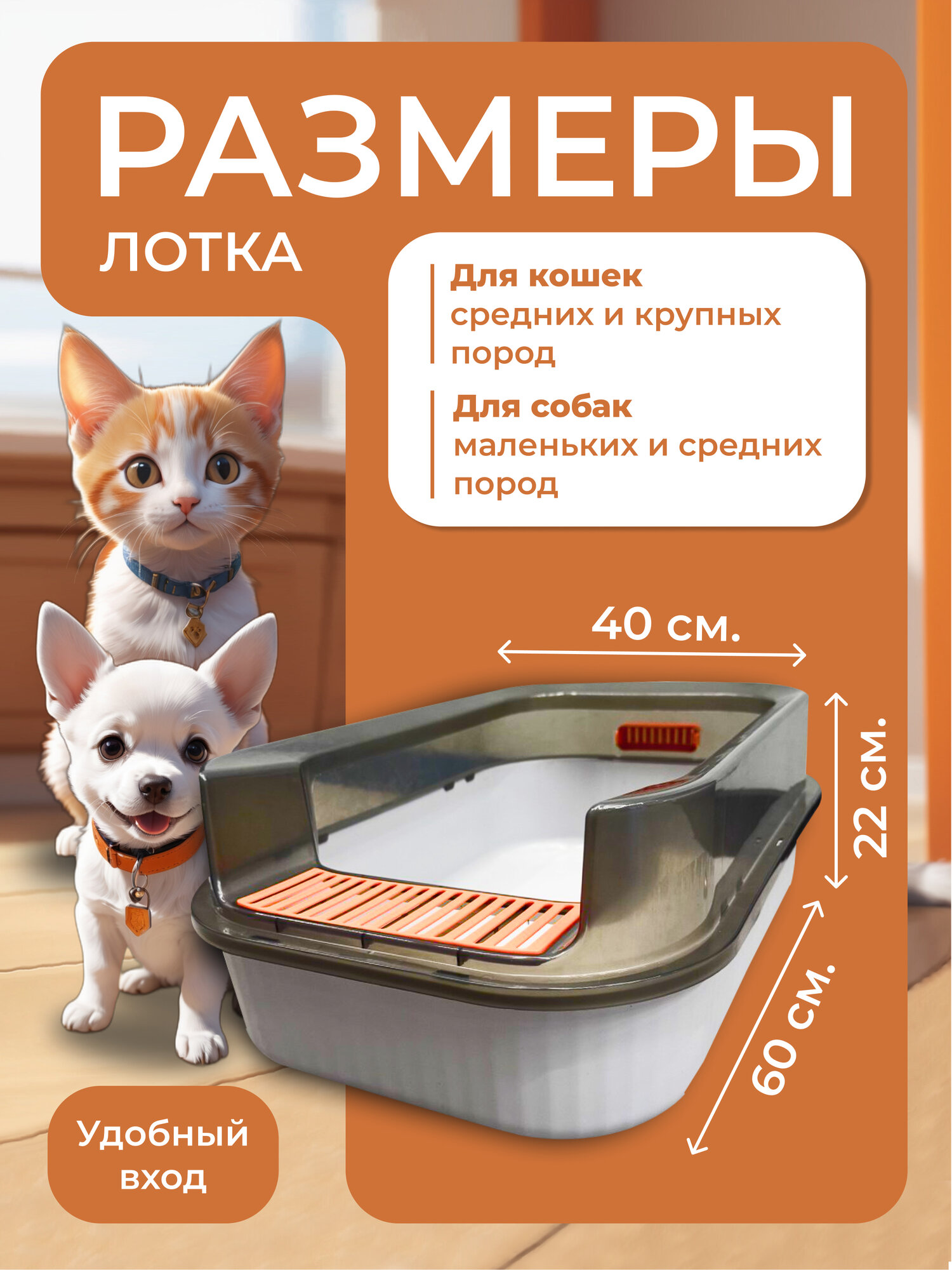 Купить Лоток для кошек и собачек " Чистый Котик" размер XL, 60х40х22 см, цвет серый