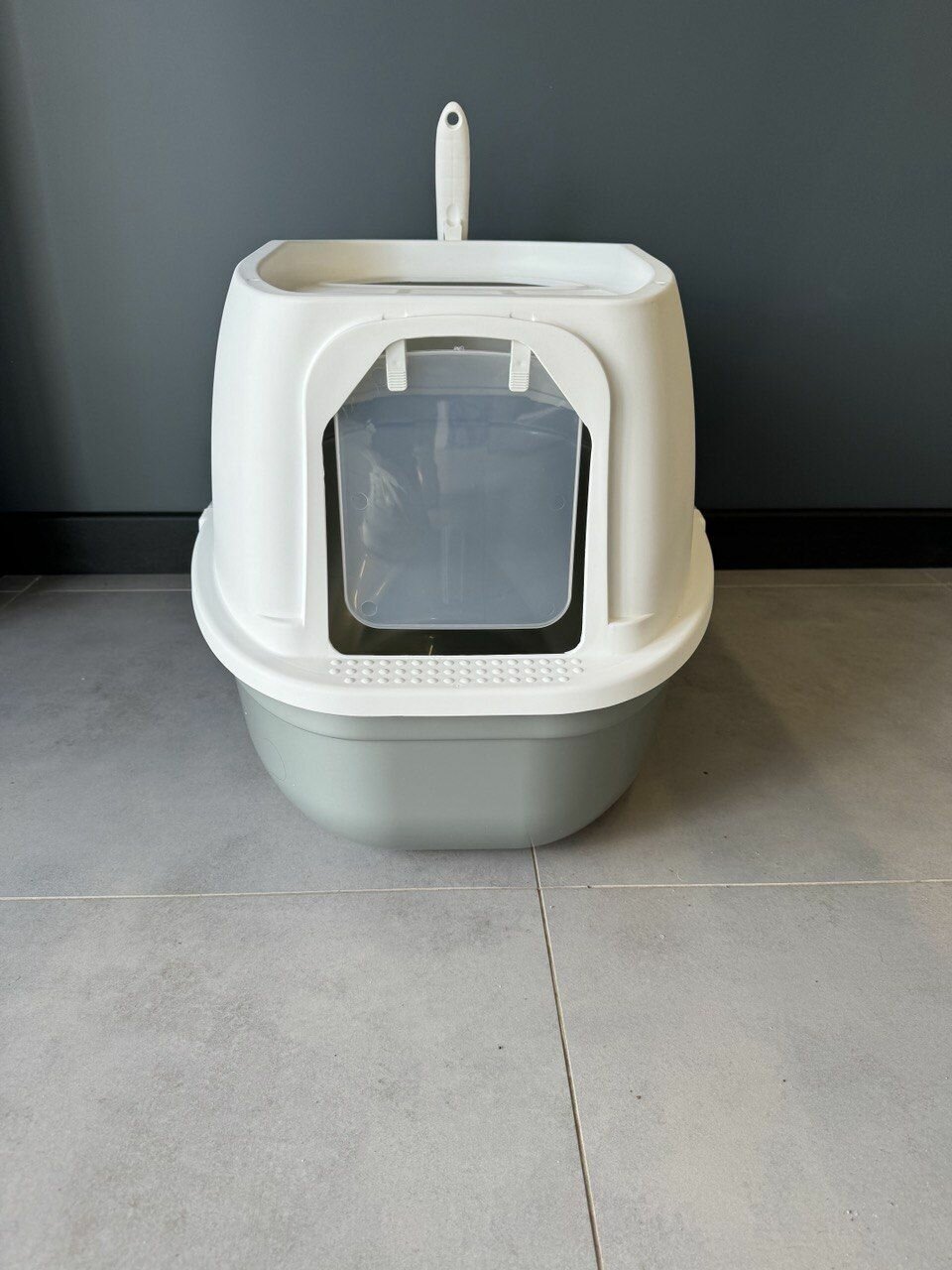 Закрытый лоток (туалет) для кошек "Чистый котик", 61x41.5x41 см, на защелках, совок, ручка, без двери, серый