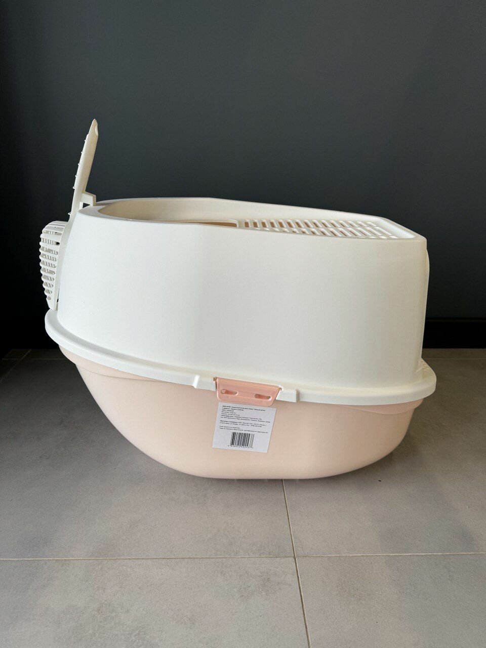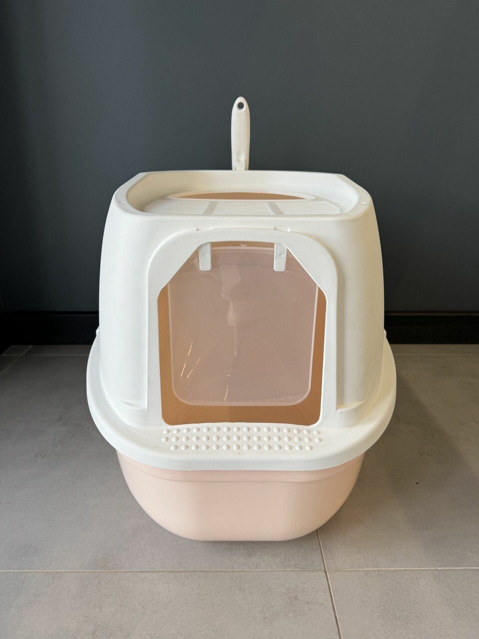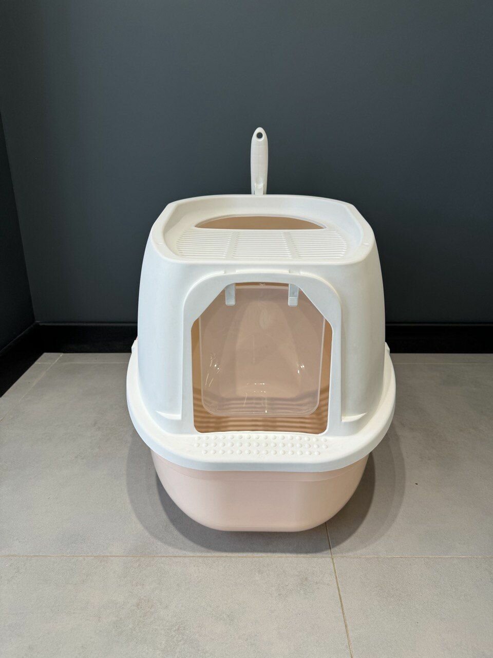 Купить Закрытый лоток (туалет) для кошек "Чистый котик", 40,7x61x41,5 см, дверь вовнутрь, люк, совок, розовый