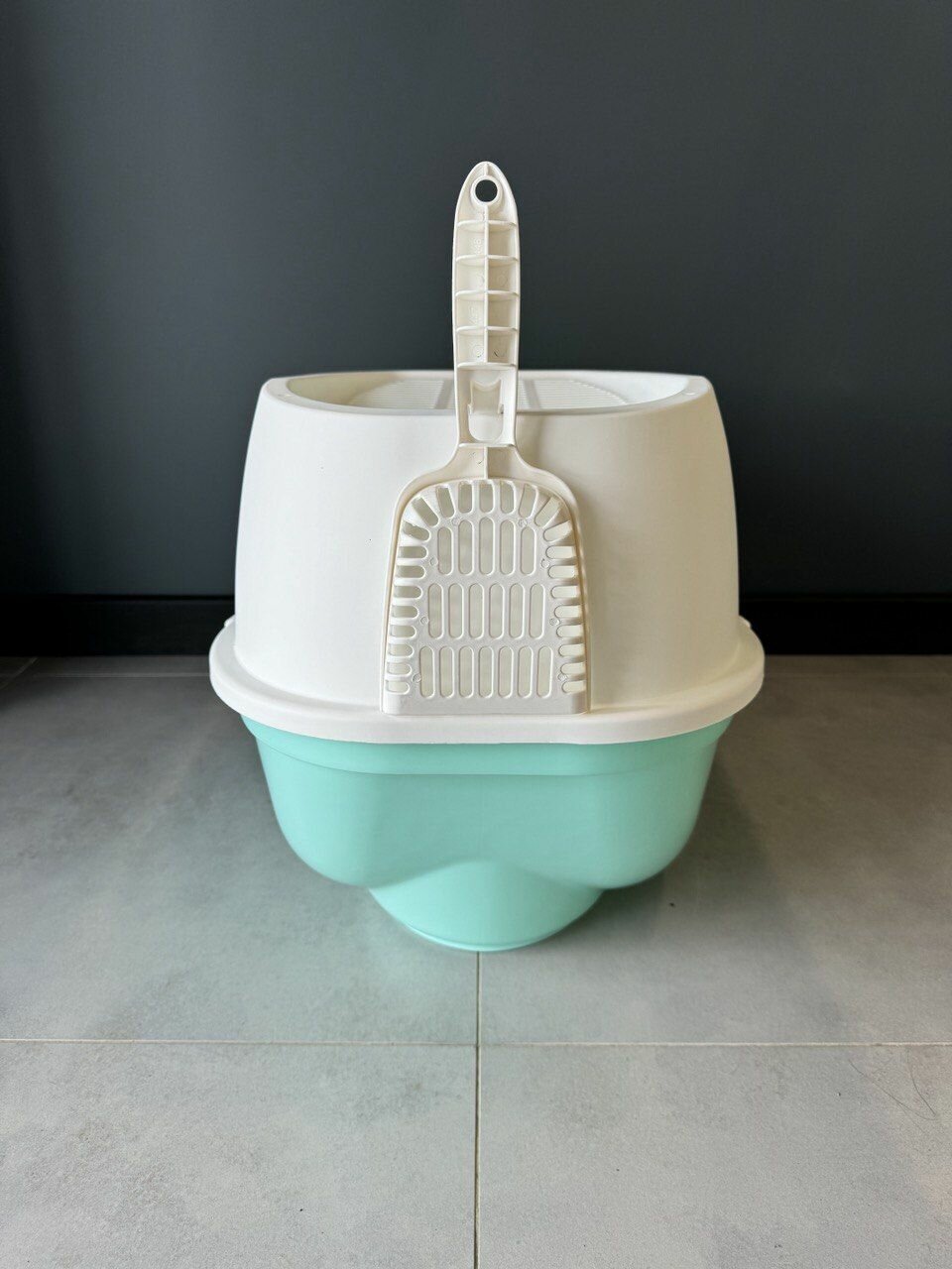 Закрытый лоток (туалет) для кошек "Чистый котик", 61x41.5x41 см, на защелках, совок, ручка, без двери, серый