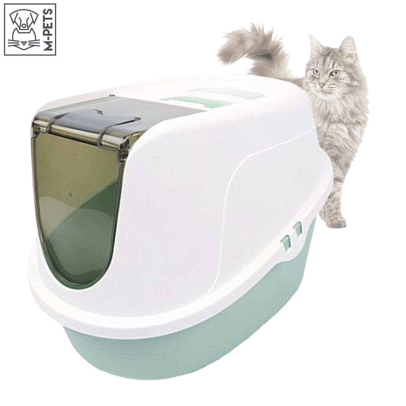 Купить Туалет-бокс M-PETS "ЭКО", для кошек, L, 60 см x 45см x42 см, цвет морская волна