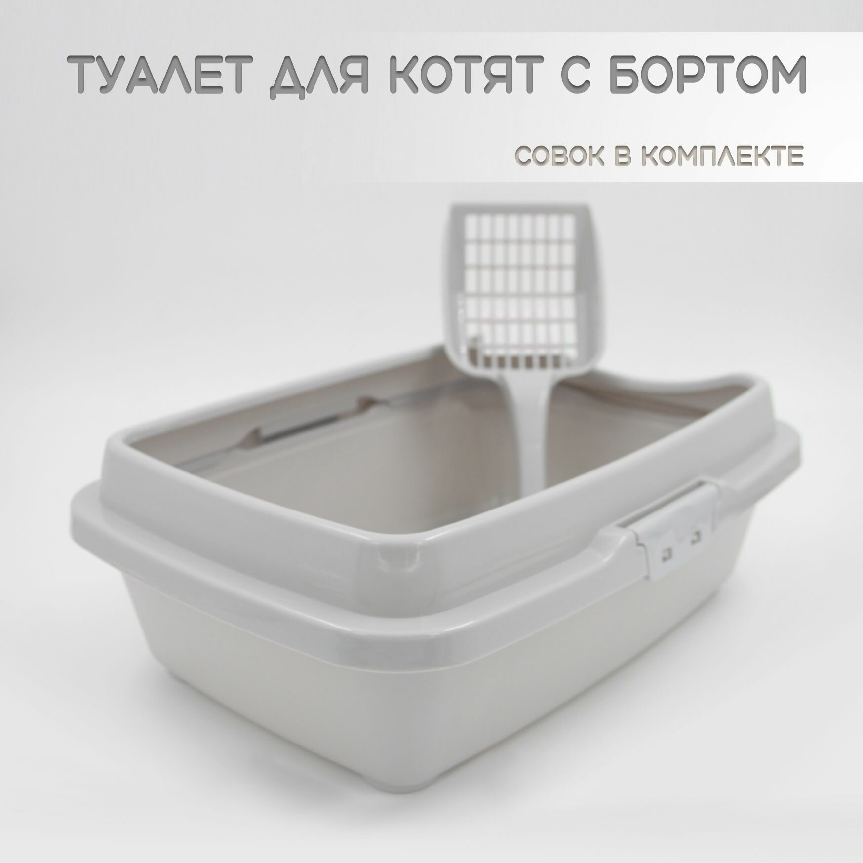 Купить Лоток для котят DD Style, светло-серого цвета, с бортиком и лопаткой, полипропилен