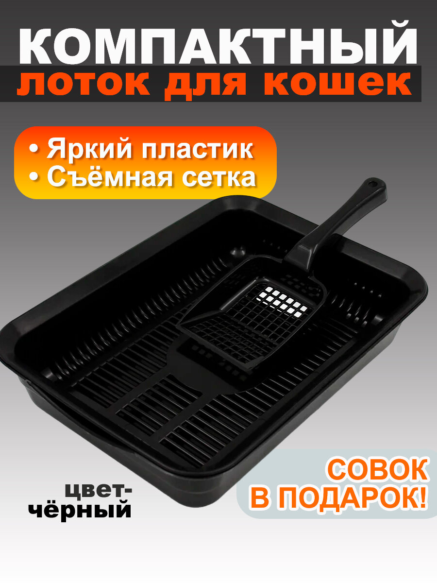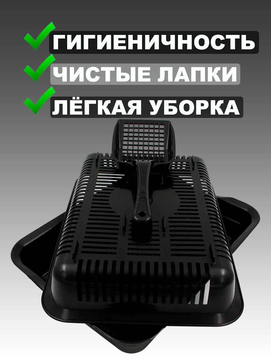 Купить Лоток для кошек с сеткой и лопаткой 34,5х25,5х7,5 см открытый №3, черный
