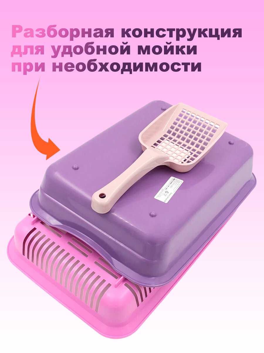 Купить Лоток для кошек с сеткой и лопаткой 34,5х25,5х7,5 см открытый №3, фиолетовый-розовый