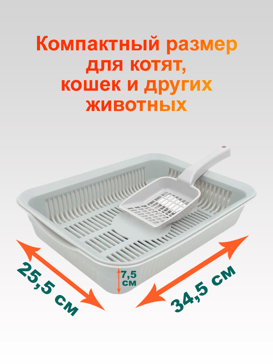 Купить Лоток для кошек с сеткой и лопаткой 34,5х25,5х7,5 см открытый №3, светло-серый