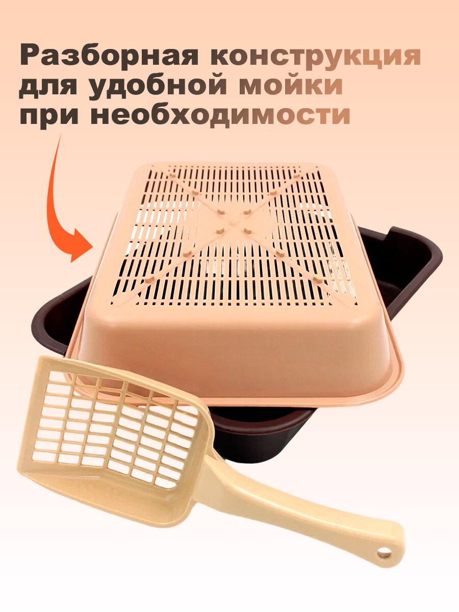 Кошачий лоток с сеткой и совком 36х26х6 см №1 для кошек и котят, бежевый-шоколад интересное: