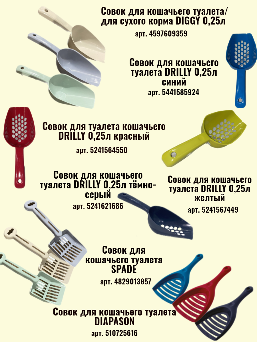 7743/P203-05 ZooOne Совок с отверстиями для кошачьего туалета "Кэт" 24,5*9,2*4,5 см, синий