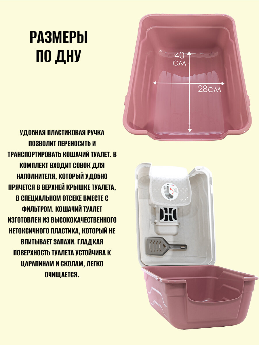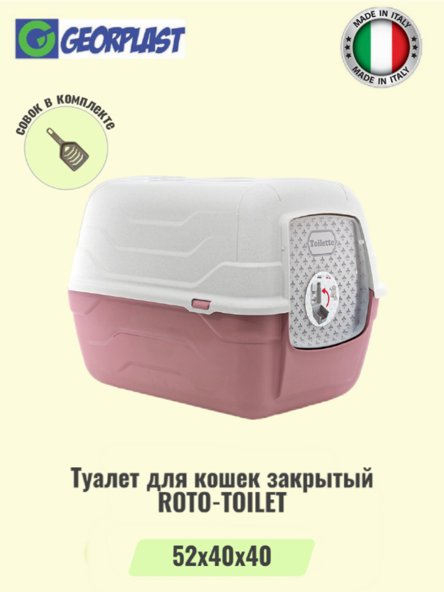 Туалет для кошек закрытый GEORPLAST ROTO-TOILEТ с совком, розовый интересное: