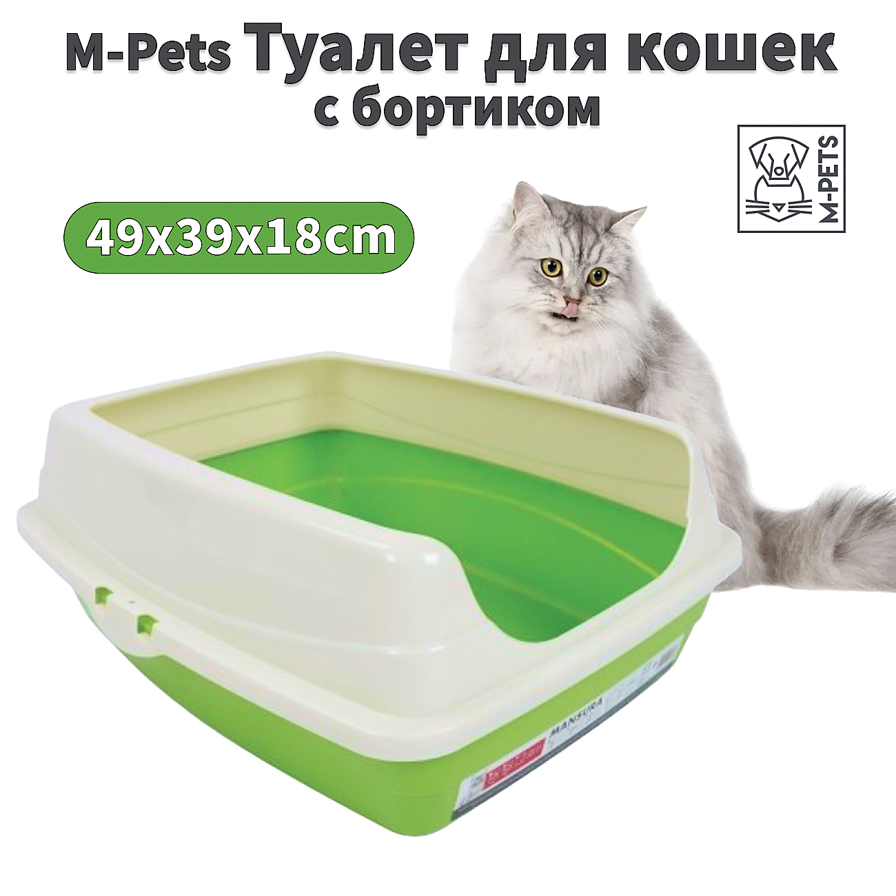 Туалет для кошек M-PETS, с бортиком, пластик, цвет случайный, 39х49х18см интересное: