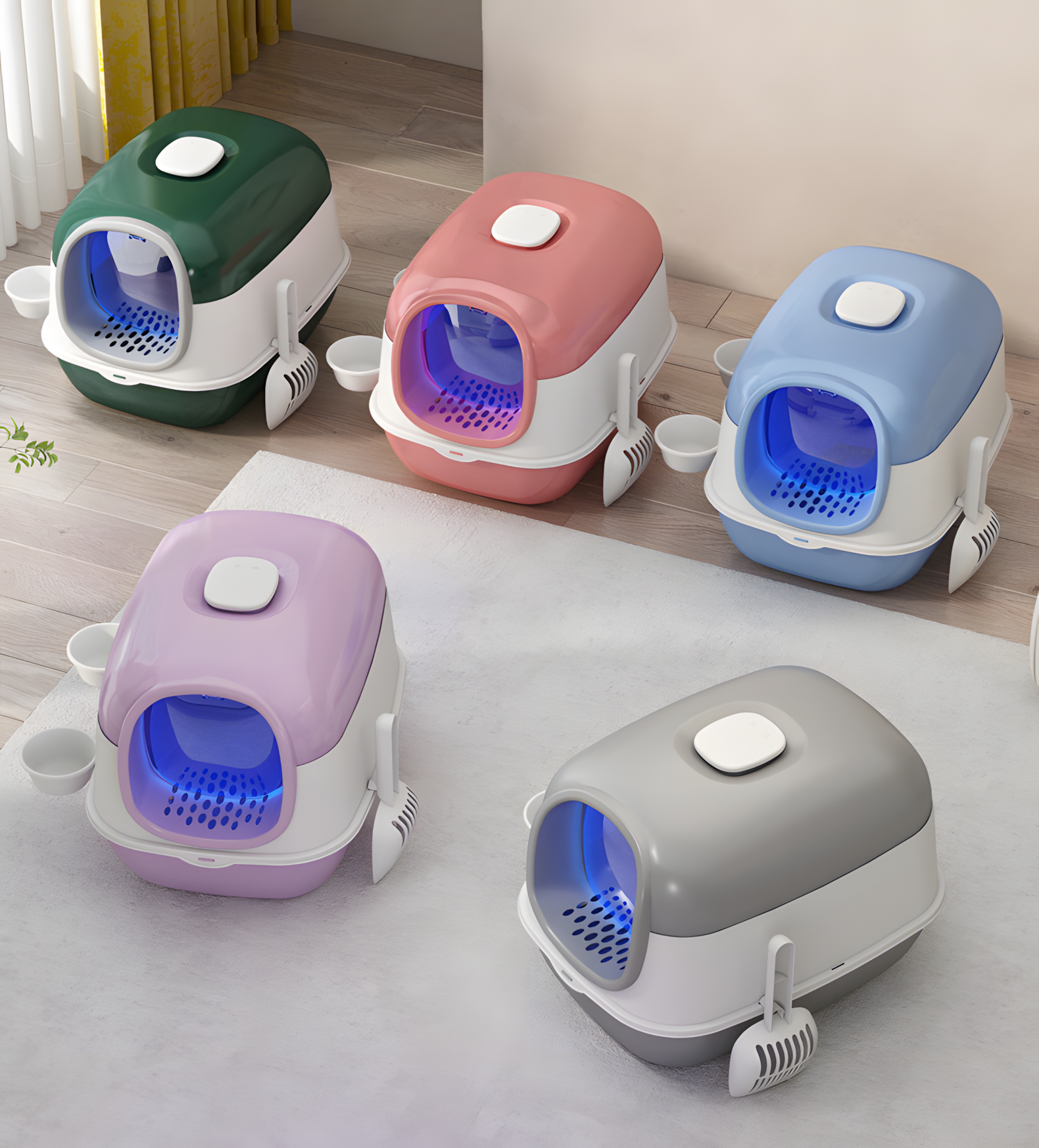 Туалет для кошек Nanbo Wang, закрытый, с УФ-лампой и угольным фильтром, голубой, пластик/полипропилен